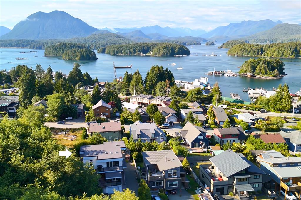 Modern contemporary design meets functionality in this stunning Tofino home. Perched on a hill, out of the tsunami zone, at the end of a quiet road & walking distance to downtown. South-facing front overlooks parkland; rear offers ocean & mountain views. Built in 2017, this 2,990 sq ft home features a 3-bed, 3-bath main residence, a 1-bed, 1-bath suite, & a garage w/access to bonus rooms. Street level garage, 2 bonus rooms & half bath. Second floor has main entry, laundry, half bath & primary bed w/ensuite ...