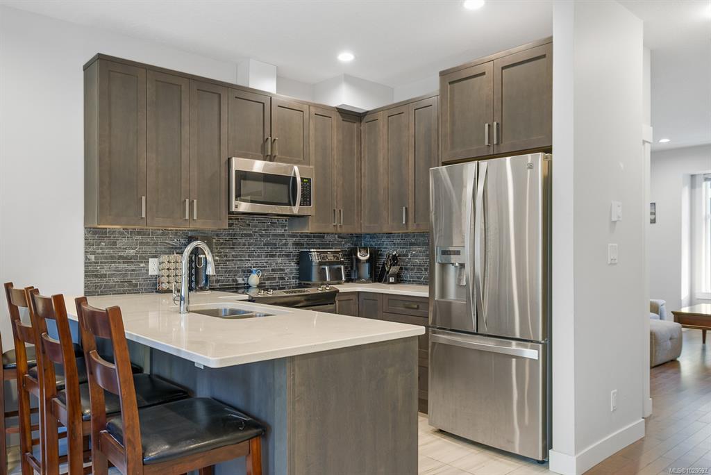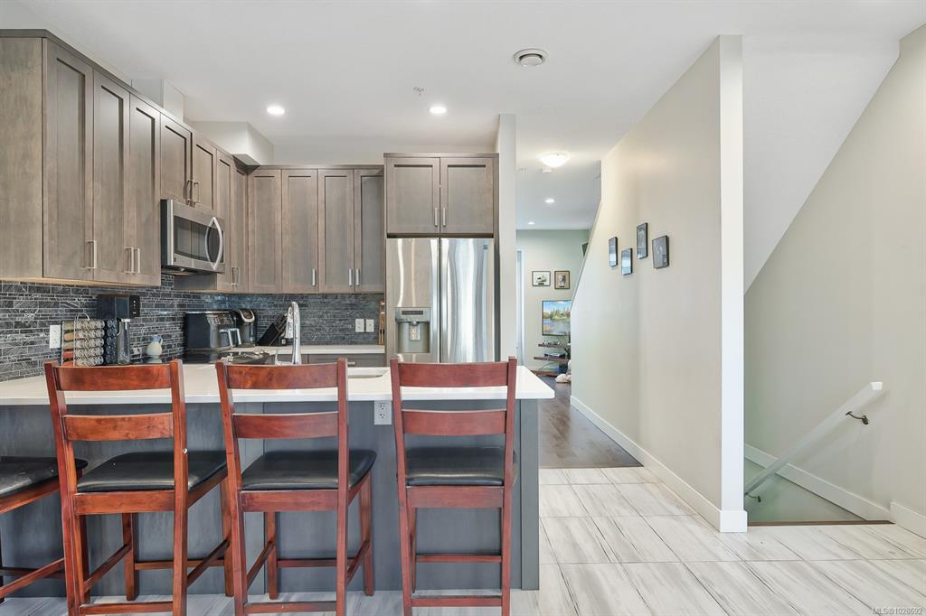 Welcome home to Painted Village! This is a wonderfully positioned home, overlooking green space, sunshine, and with great privacy. 128-6057 Doumont RD, is located in a well-run complex in a highly desirable part of Nanaimo, close to shopping, restaurants, hiking trails, and convenience. The main floor has a functional layout with open concept and a dining area that walks on to a sun-soaked balcony, perfect for bar-b-q's, or your morning coffee. There's updated appliances, two bedrooms on the upper, both wit...