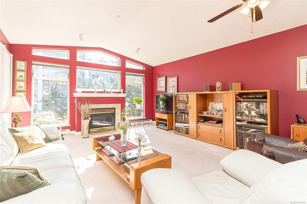 Welcome to Grand Oaks Terrace, where refined living meets comfort and convenience. This top-floor residence offers 2 bedrooms and 2 bathrooms in a freshly painted open-concept layout filled with natural light. The expansive living and dining area boasts vaulted ceilings, a skylight, and a gas fireplace that creates an inviting atmosphere for both everyday living and entertaining. The chef-inspired kitchen has abundant cabinetry and generous counter space. Retreat to the spacious primary suite, featuring a w...