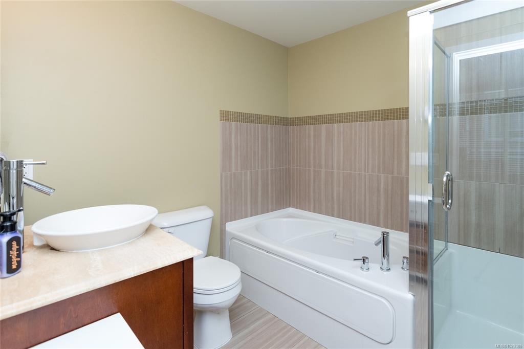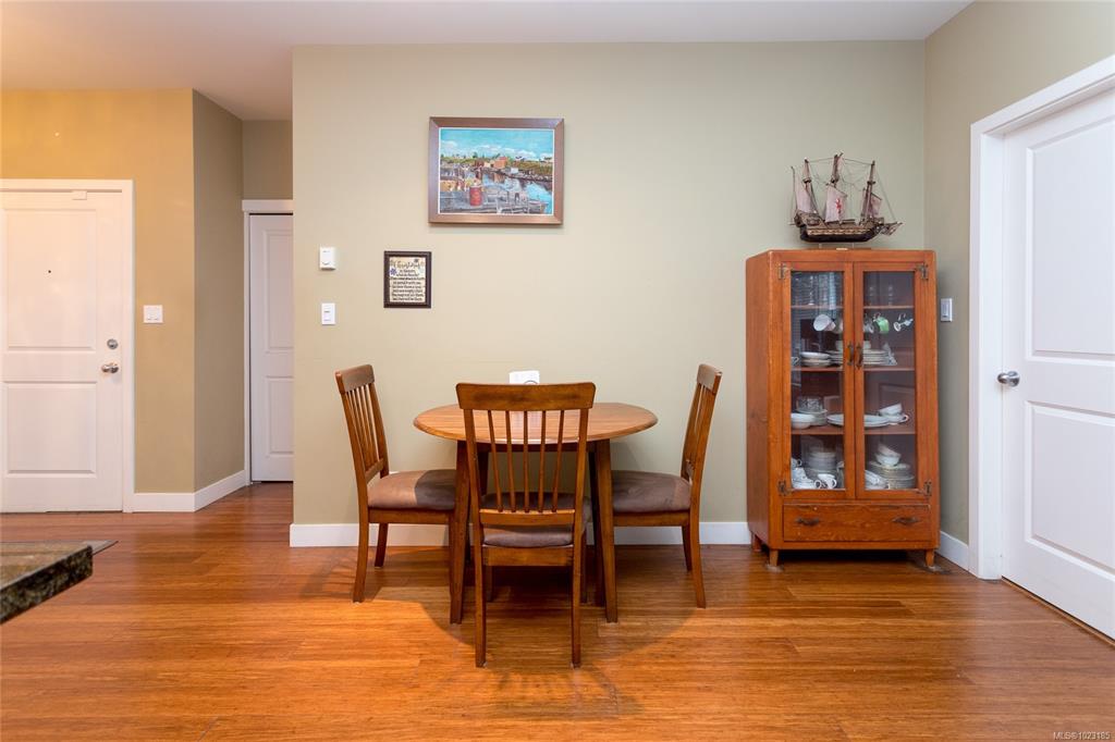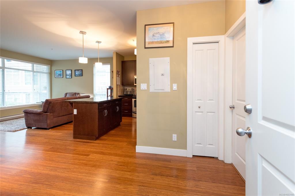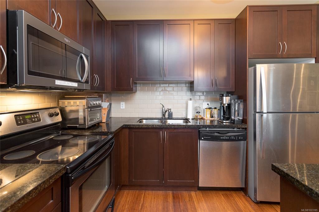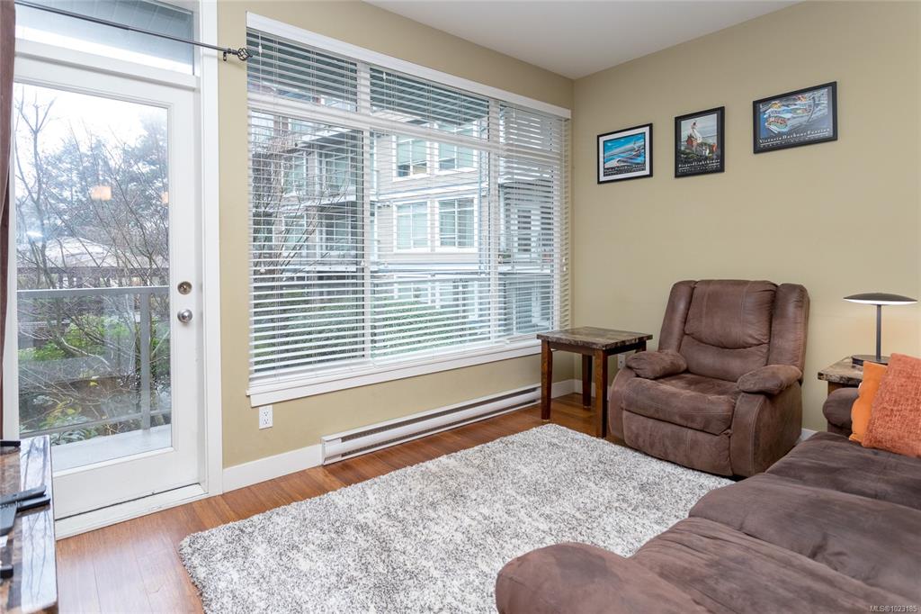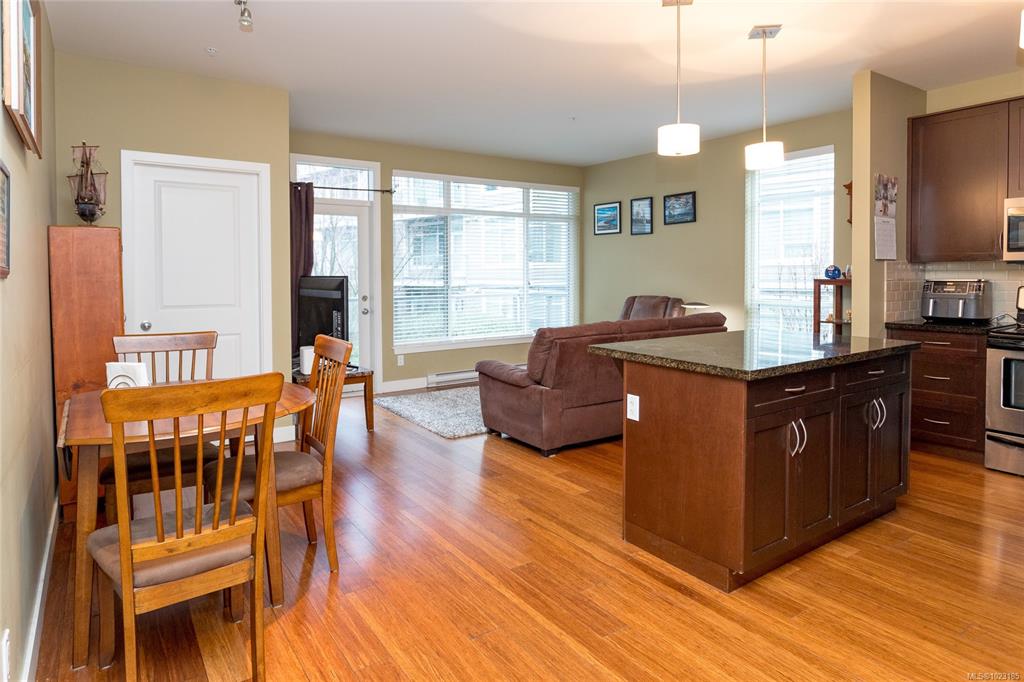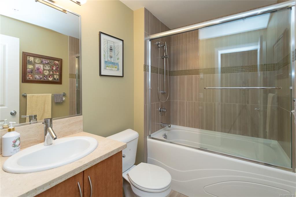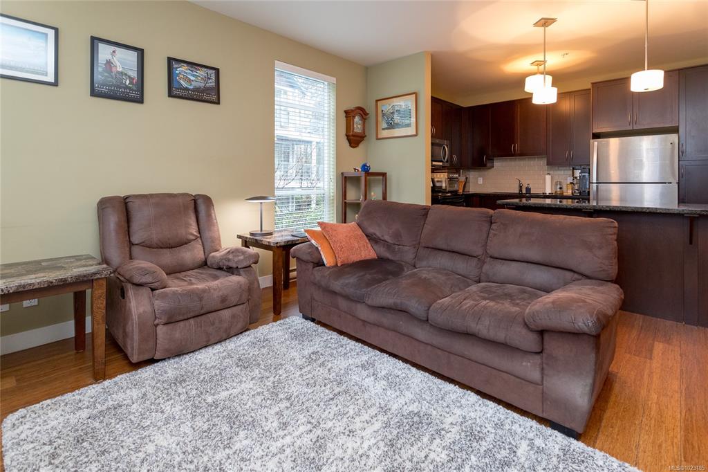 This inviting corner condo provides a comfortable living environment, featuring 2 bedrooms and 2 bathrooms. Ideally positioned just steps away from Langford’s diverse shops, restaurants, and Royal Colwood golf course. Original owner and formerly used as a show suite, the condo is nestled in a quiet part of the building, enjoying tranquil views of beautifully landscaped courtyards from the balcony. Quality finishes throughout: engineered wood flooring, stainless steel kitchen appliances and granite counterto...