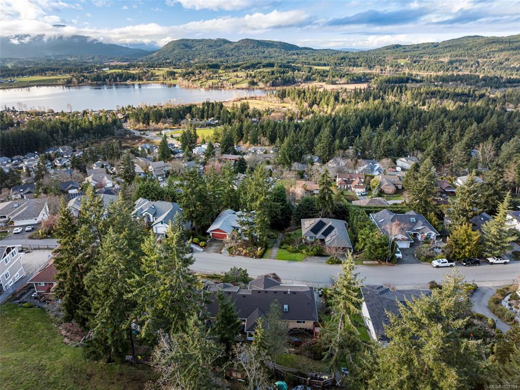 Spectacular Quamichan Lake, valley, and mountain views highlight this unique home located in the highly sought-after “Properties” neighbourhood. Set on a large double lot, this home offers exceptional flexibility and future potential. The home features an updated kitchen with eat in and coffee bar area. The open living and dining areas feature stunning valley and lake views and access to a private balcony to take in the sights. The lower level includes work spaces and a bedroom with ensuite bathroom. The ho...