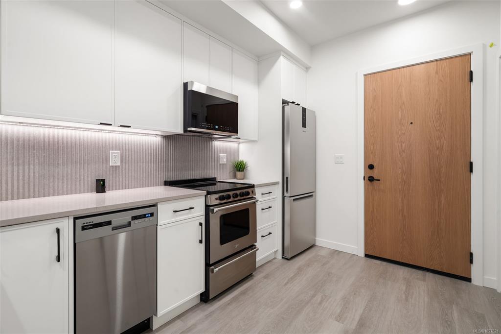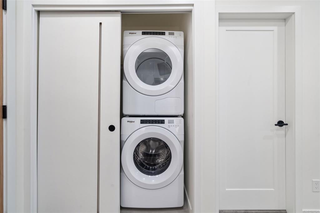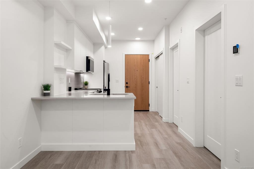 Step into comfort and contemporary living in this thoughtfully designed condo, where every detail has been curated for ease and enjoyment. The modern kitchen is both stylish and functional, showcasing Whirlpool appliances, a tiled backsplash, and a smart bar seating area that invites casual meals and conversations. The bathroom features a tiled shower complemented by in-floor heating—perfect for slow mornings and relaxed evenings. Full-size stackable laundry, air conditioning, and window screens add everyda...