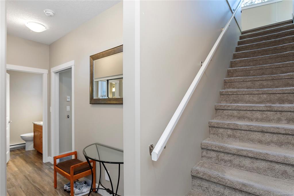 This beautiful end-unit townhome in North Nanaimo is perfect for first time buyers, growing families or empty nesters! Backing onto a quiet green space and a creek, this home benefits from a large, super private, ground level patio. Back inside you'll find that this 2016 build has a flexible layout that could work for almost anybody. Two bedrooms on the top floor, including the primary with a walk out, mountain-view balcony, as well as a 4-pc bathroom. The Main floor is naturally bright with big windows and...