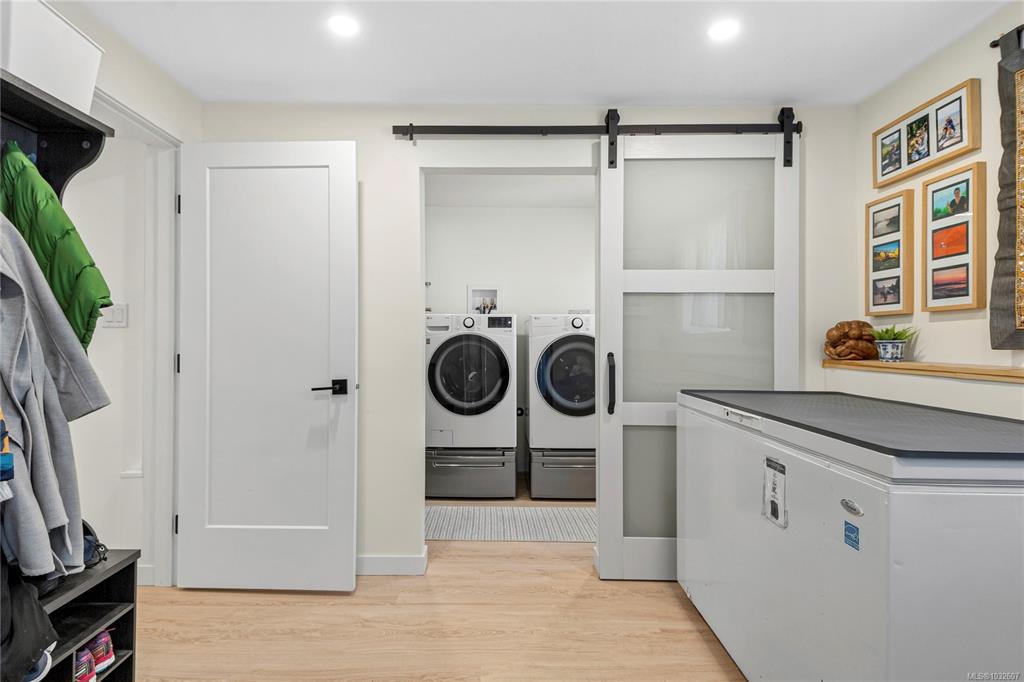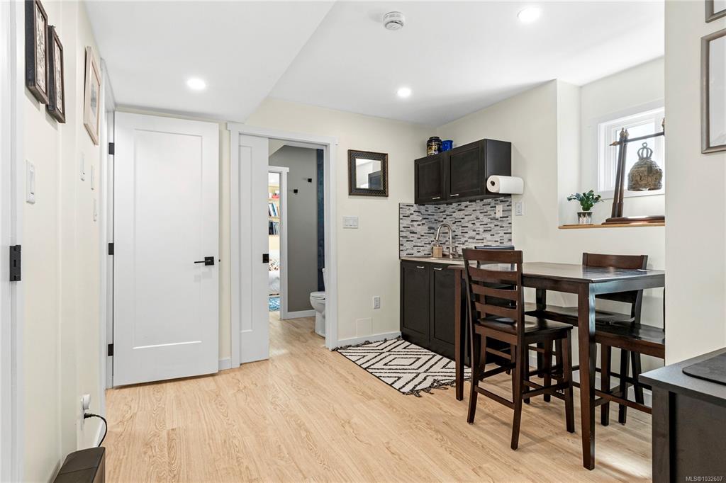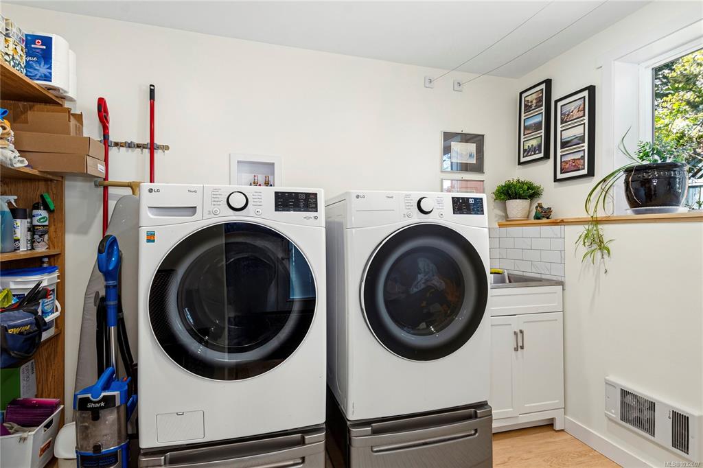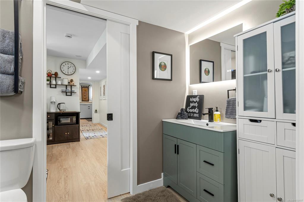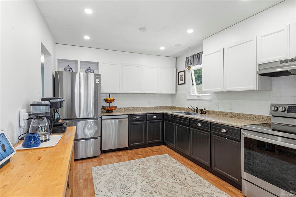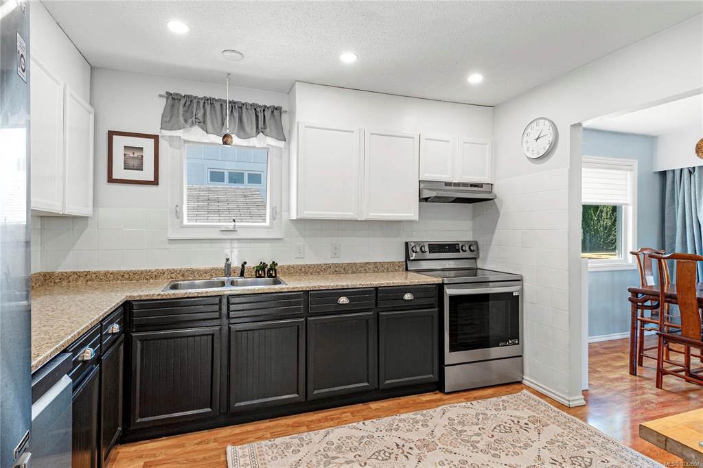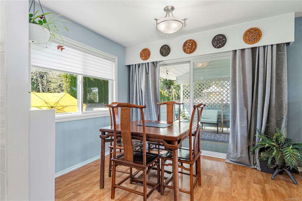Solid 4 bed/2 bath family home plus detached shop on quiet central Comox street! Enjoy entertaining in the large country kitchen that is that is open to the dining room with sliding glass doors out to expansive covered patio. Large living room and 2 spacious bedrooms complete the upstairs while downstairs there are 2 additional bedrooms plus family room with cozy natural gas fireplace and storage room. Outside there is covered carport parking plus 23’x19’ detached garage/workshop with separate access off Ma...