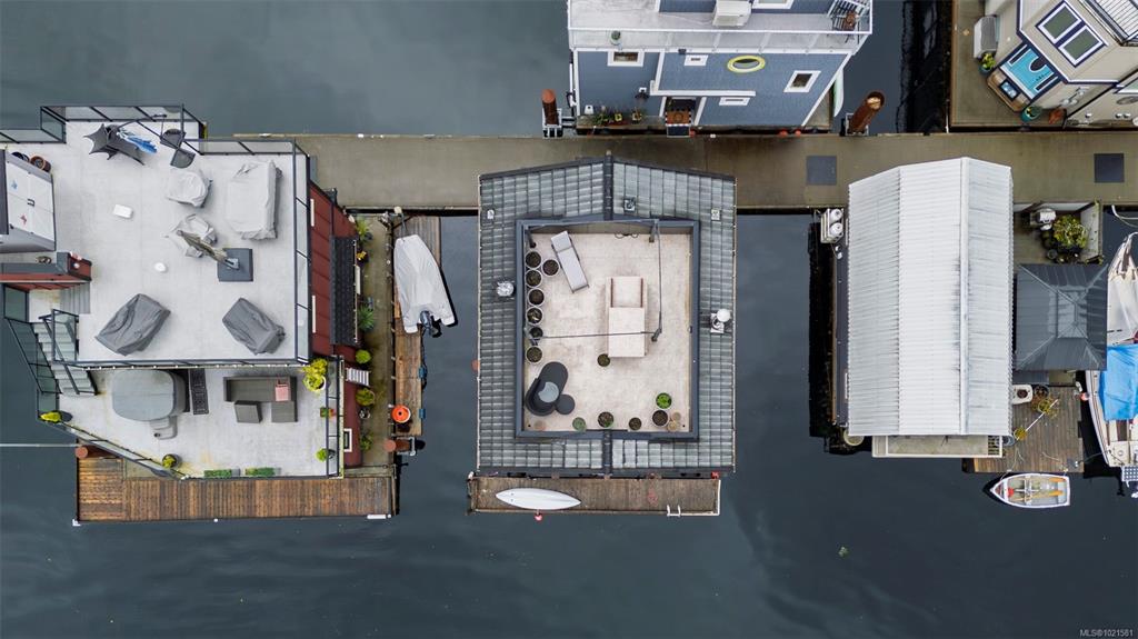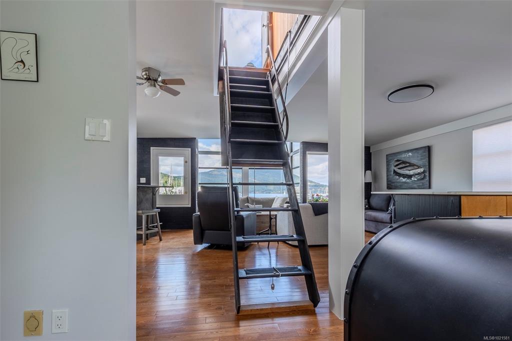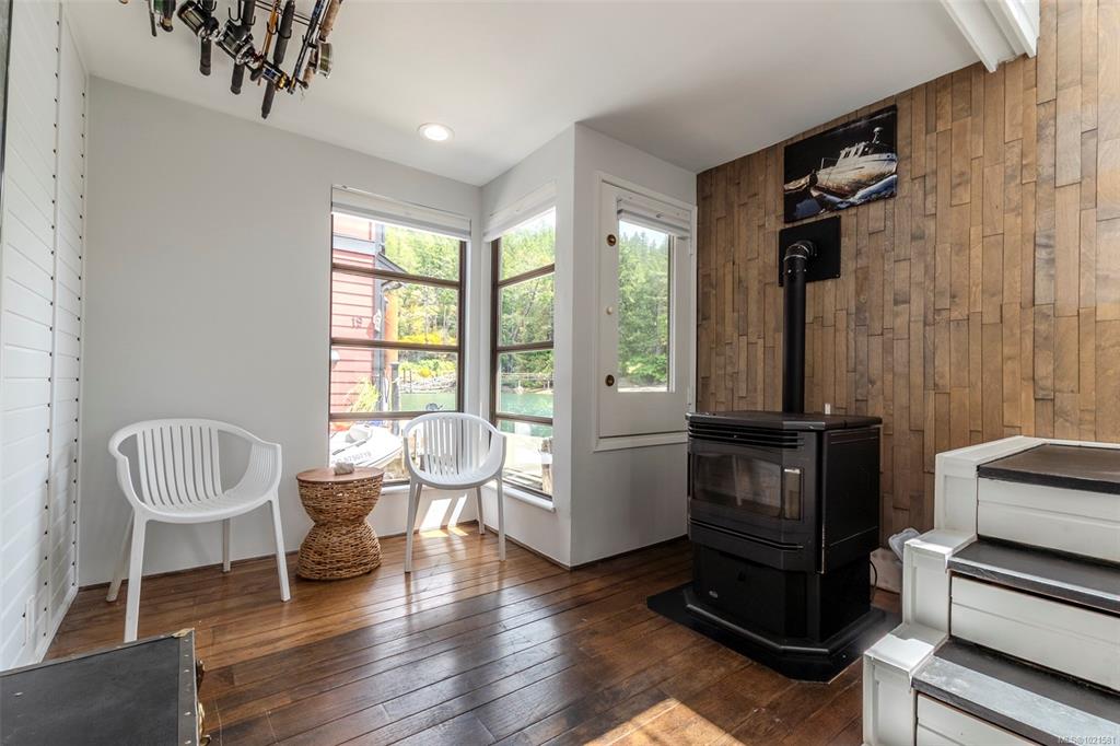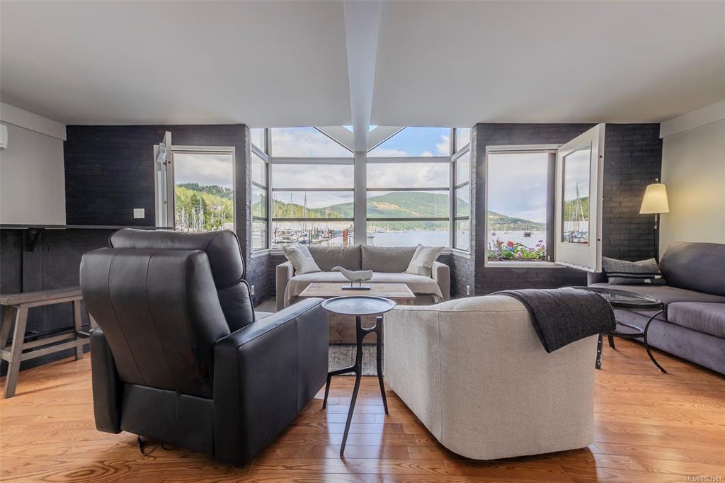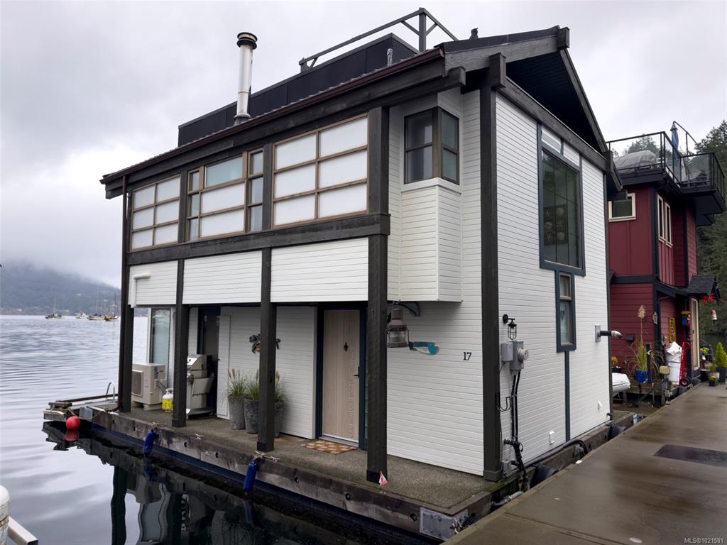 Experience oceanfront living in this fully turn-key West Coast-style float home at Maple Bay Marina. Built on a solid concrete float, it features freshly painted cedar siding, a metal roof plus a roof top patio! The lower level includes a spacious primary bedroom with walk-in closet and 3 pc ensuite with tiled walk-in shower, sauna and radiant in-floor heat. A flex space suits guests or office use, and a new full-size w/d is nearby. Smart storage includes built-ins along the stairs and a hidden under-st...
