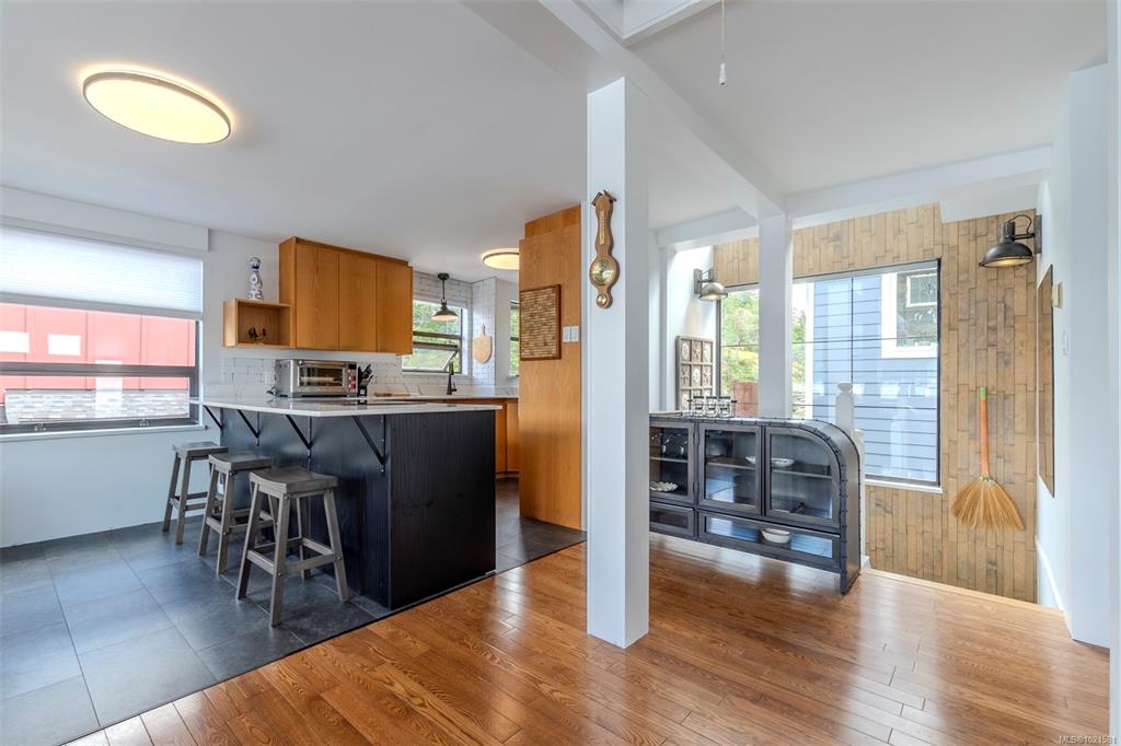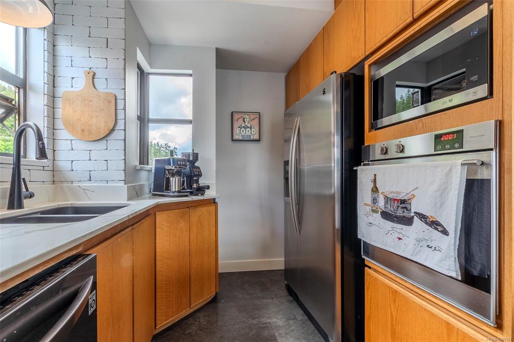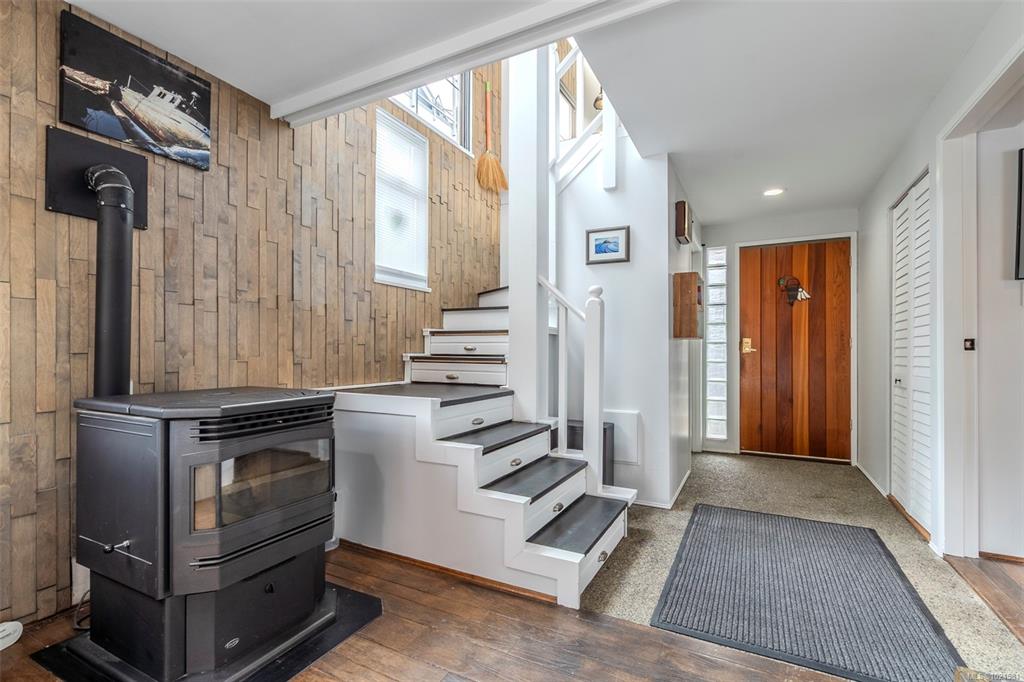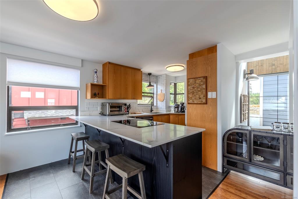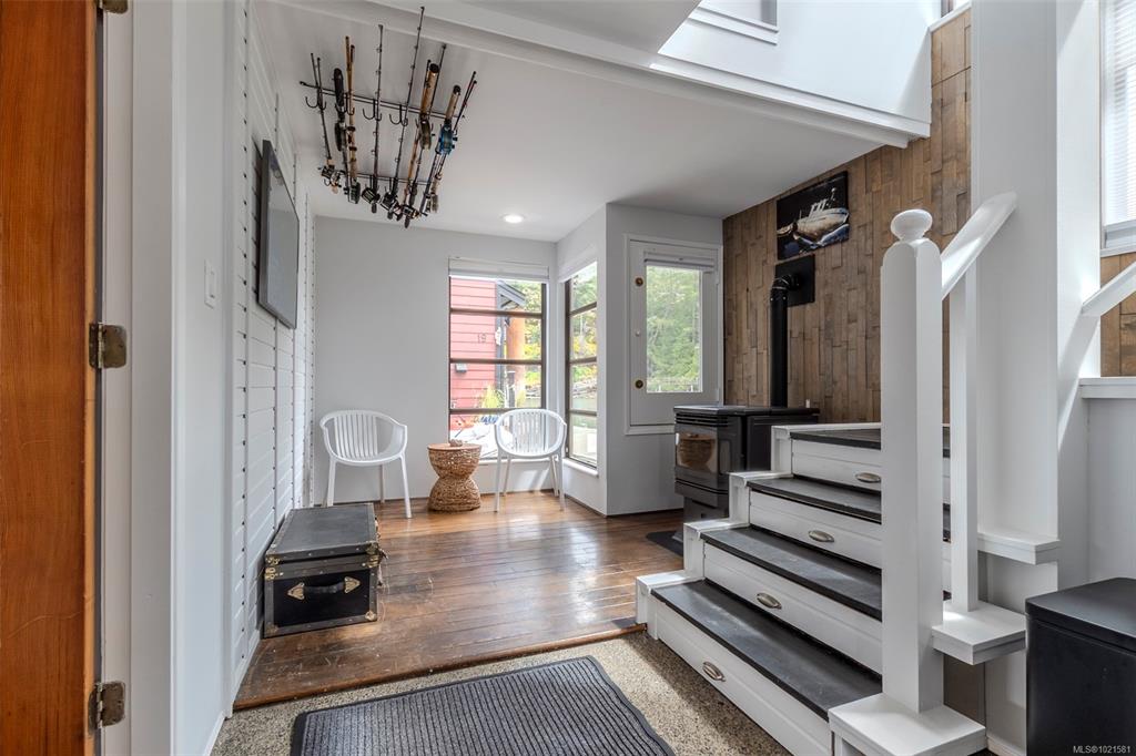 Experience oceanfront living in this fully turn-key West Coast-style float home at Maple Bay Marina. Built on a solid concrete float, it features freshly painted cedar siding, a metal roof plus a roof top patio! The lower level includes a spacious primary bedroom with walk-in closet and 3 pc ensuite with tiled walk-in shower, sauna and radiant in-floor heat. A flex space suits guests or office use, and a new full-size w/d is nearby. Smart storage includes built-ins along the stairs and a hidden under-st...