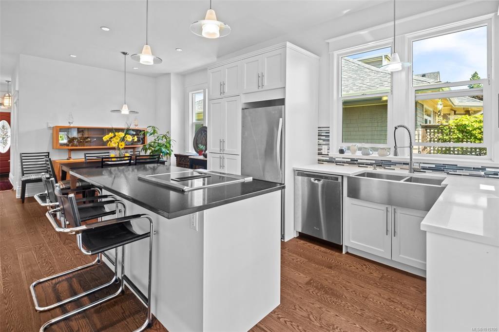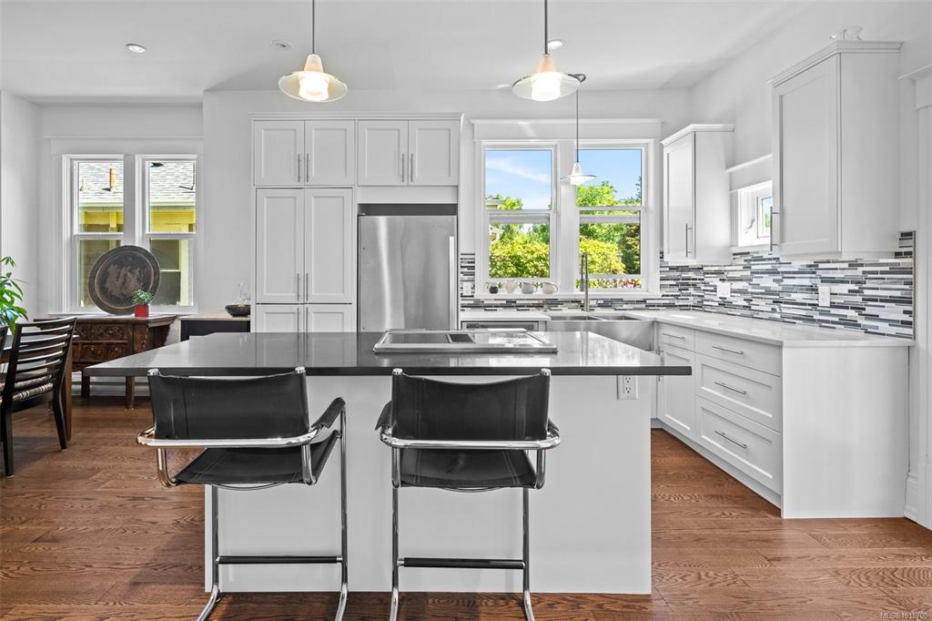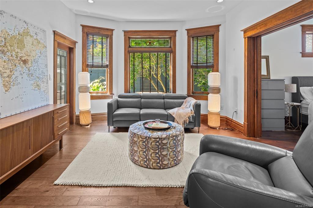 Located on a quiet street in one of Victoria’s premier neighbourhoods near Cook Street Village, this immaculate home is move-in ready. A legal duplex with an added two-bedroom suite below with excellent income potential, the flexible layout suits a variety of family dynamics or investors. Thoroughly upgraded for modern convenience, the home retains the grace and craftsmanship of the early 20th century: detailed trim work with dentil moulding, a tiled fireplace, stained glass windows, and restored solid wood...