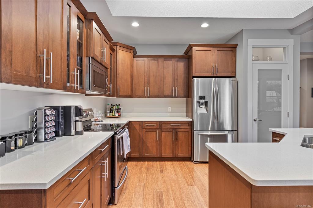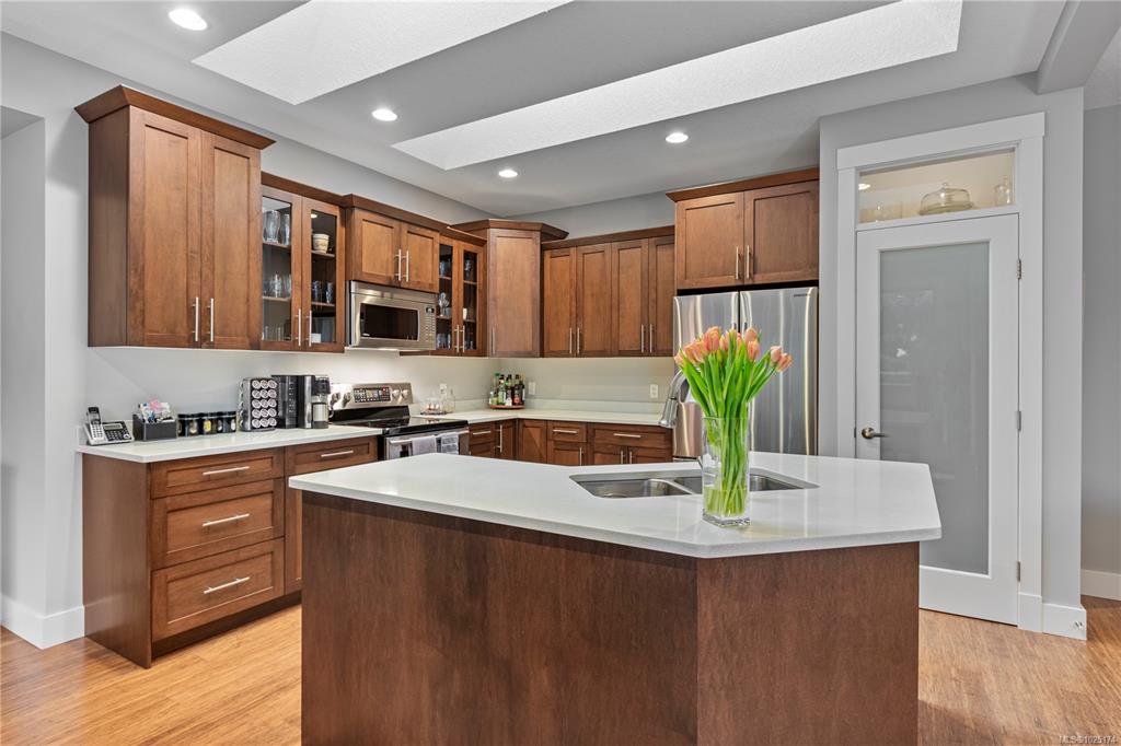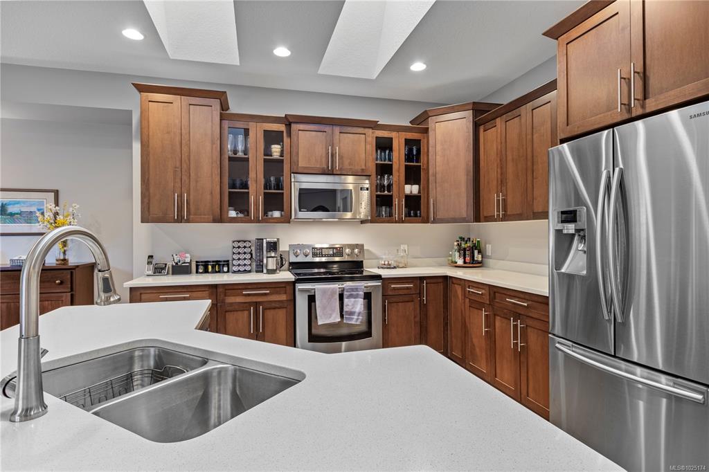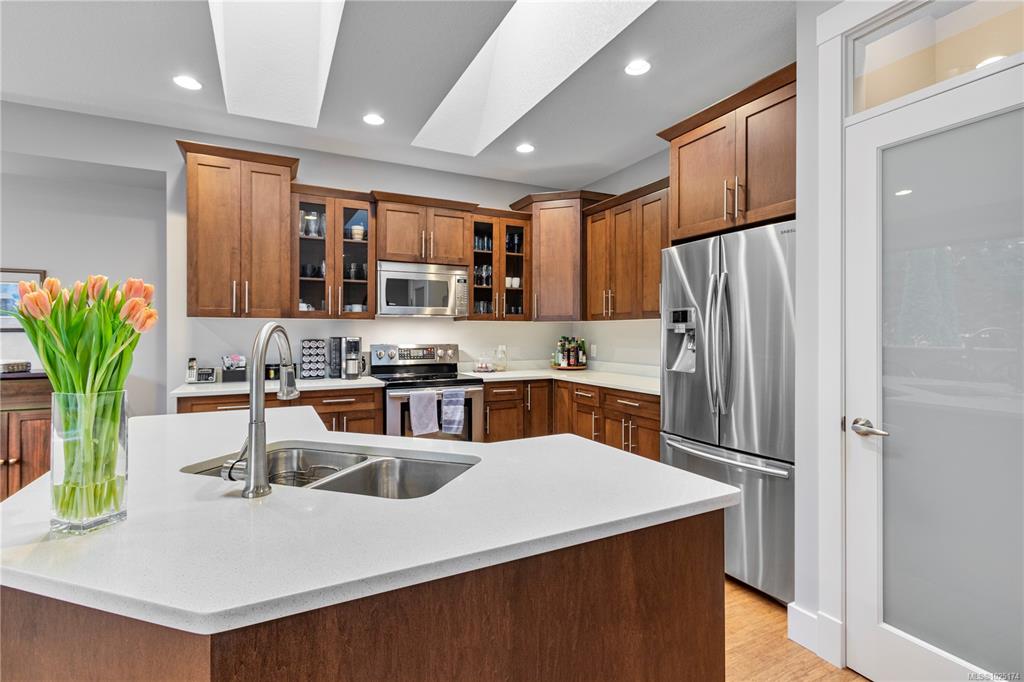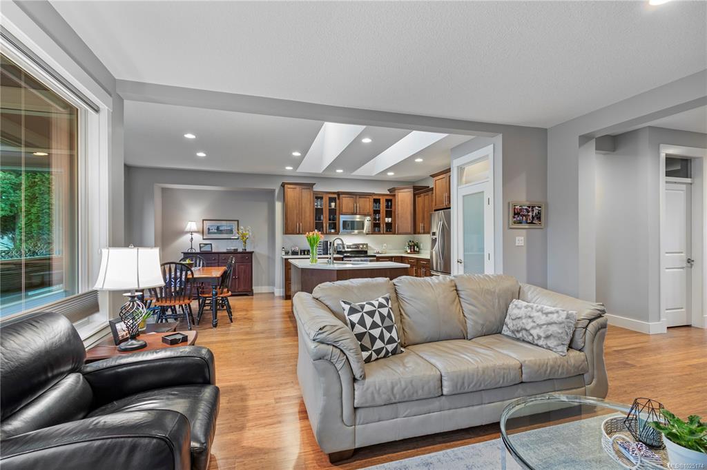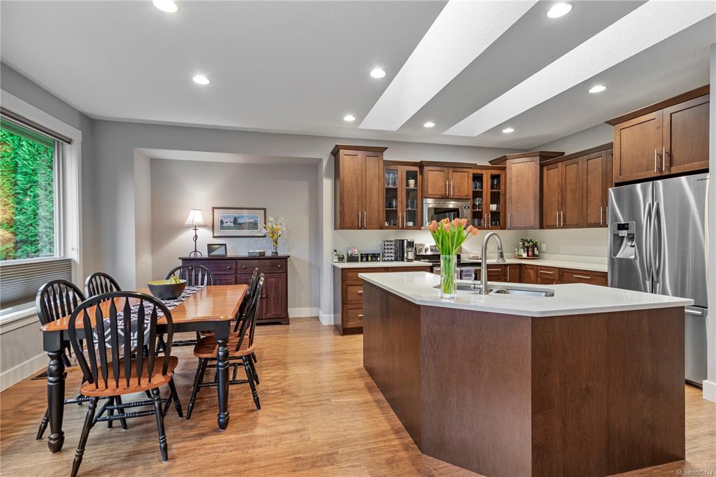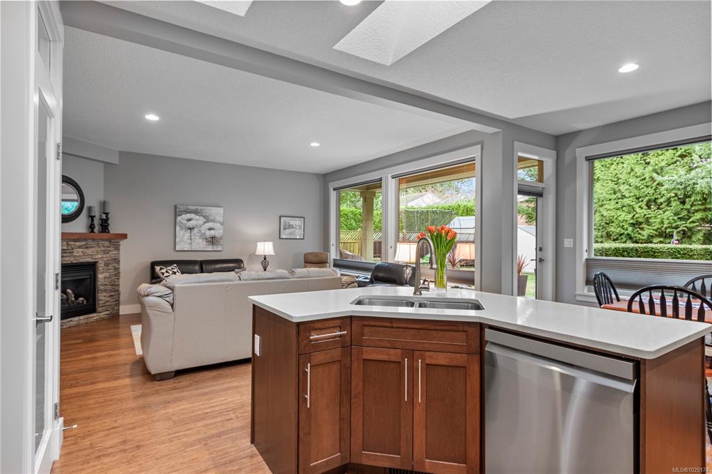 Discover exceptional living in this stunning 4 bed, 3 bath home in North Nanaimo. Enjoy access to schools, parks, shopping, and Blueback Beach. Open floor plan with hardwood flooring. Custom kitchen boasts maple cabinets, granite, large island, walk-in pantry, stainless steel appliances, and a new dishwasher, all under skylights. Connected living/dining areas offer a rock surround gas fireplace, large windows, and backyard access. Main floor includes a spacious primary bedroom with walk-in closet, luxurious...