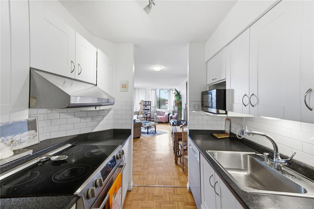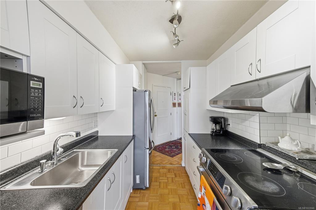 South-facing suite in the coveted Roberts House with the best orientation in the building! Enjoy a morning coffee on one of two balconies as hummingbirds drift by or peacocks wander in from Beacon Hill Park. Featuring oak parquet floors, updated kitchen with new counters & appliances (2022) and a classic bathroom renovation(2018) with marble floors, new tub, vanity & toilet. 1 cat/1 dog (under 50lbs) OK! Resort-style amenities include a wheelchair-accessible ozone pool & hot tub, gym, modern games lounge, l...