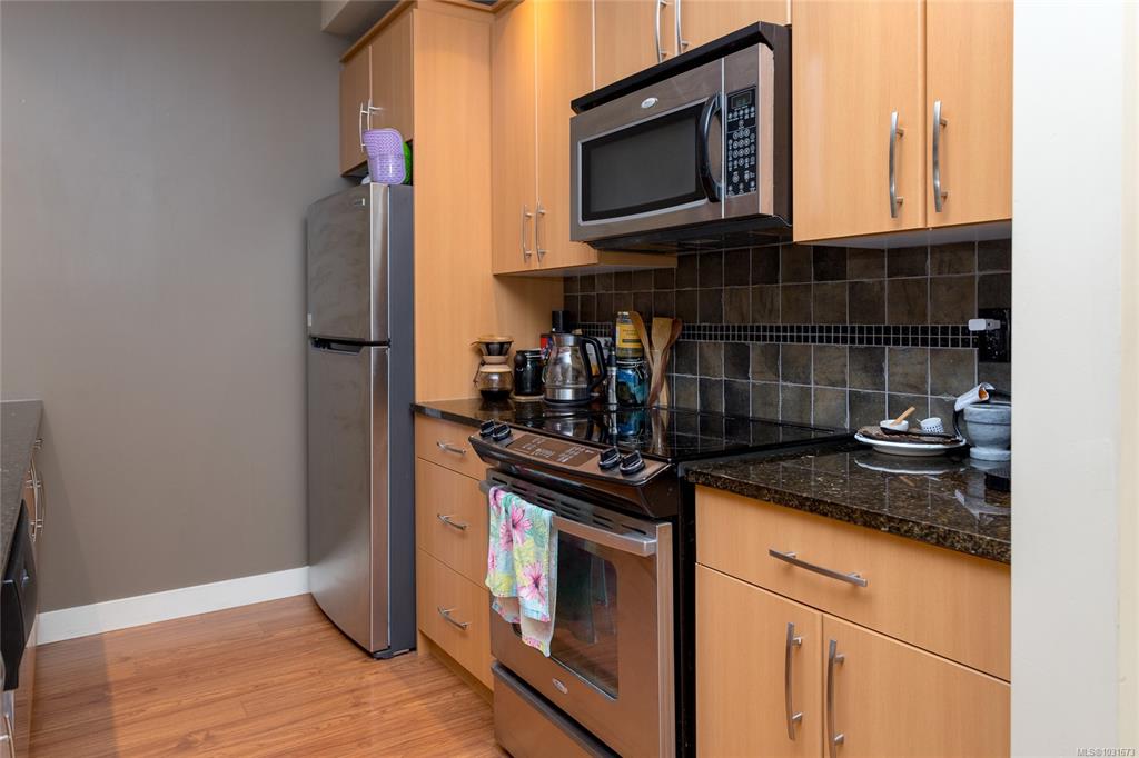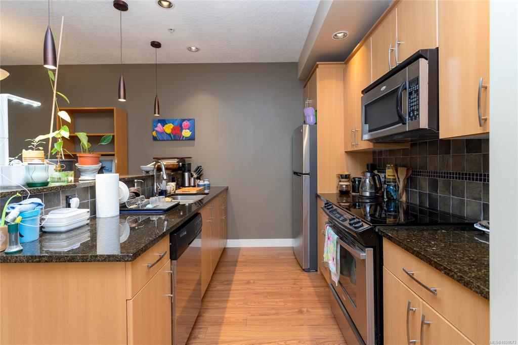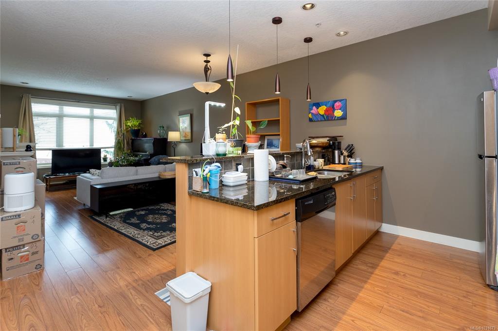 Welcome to La Vie at Millstream Village, where bright, easy living meets a vibrant Langford lifestyle. This light-filled 1 bedroom suite offers an open concept layout with oversized windows, cozy fireplace & seamless flow to a south facing deck at the back of the building. The gourmet kitchen features granite countertops, stainless steel appliances & breakfast bar perfect for everyday living or gathering with friends.The spacious primary bedroom includes access to the balcony for quiet starts to your day or...