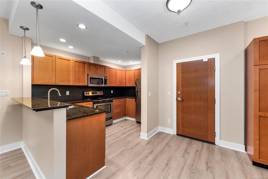 This 2 bedroom 2 bathroom home offers over 850 sq ft. Spacious Kitchen with maple shaker cabinets, stone counters with tile backsplash, stainless appliances, and breakfast bar. Good sized living room with access to the covered deck. Generous master bedroom with walk in closet and full ensuite. Second bedroom and bathroom, insuite laundry room, Fresh paint and flooring. Cozy SOUTH facing corner suite overlooking the bucolic pedestrian wildlife corridor. Steps to the Red Barn Market, Pharmacy, and Olympic Vi...