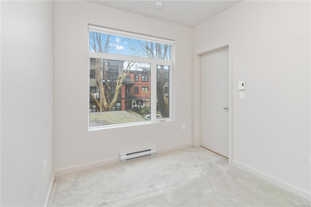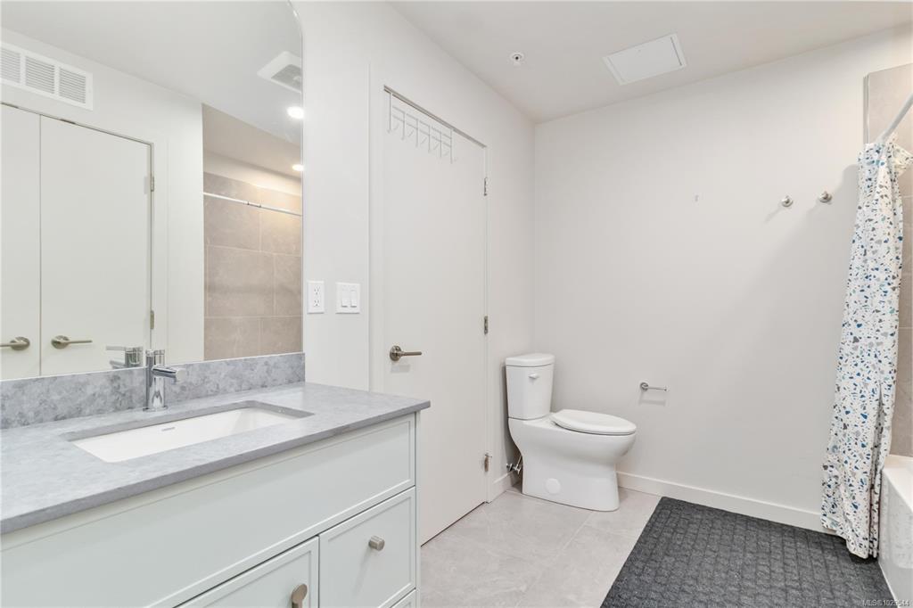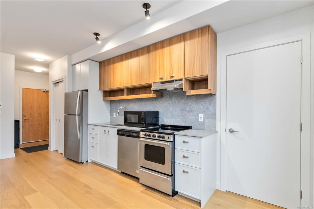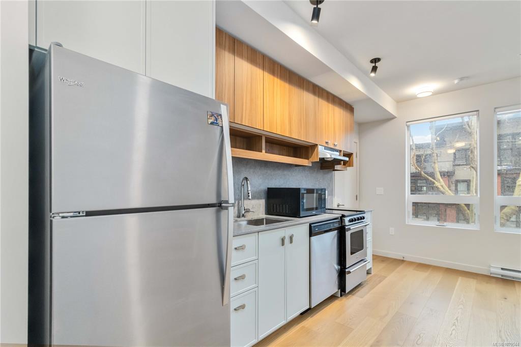 Welcome to this relatively new one bed and den unit at Tresah East, a contemporary condo community ideally located in Victoria’s vibrant Midtown, just minutes to downtown, the Galloping Goose Trail, and the Gorge Waterway. The open-concept layout features nearly 9-foot ceilings, wide-plank oak flooring, and modern finishes throughout.The stylish kitchen includes quartz countertops and a stainless steel appliance package, seamlessly flowing into the oversized living space filled with natural light from multi...