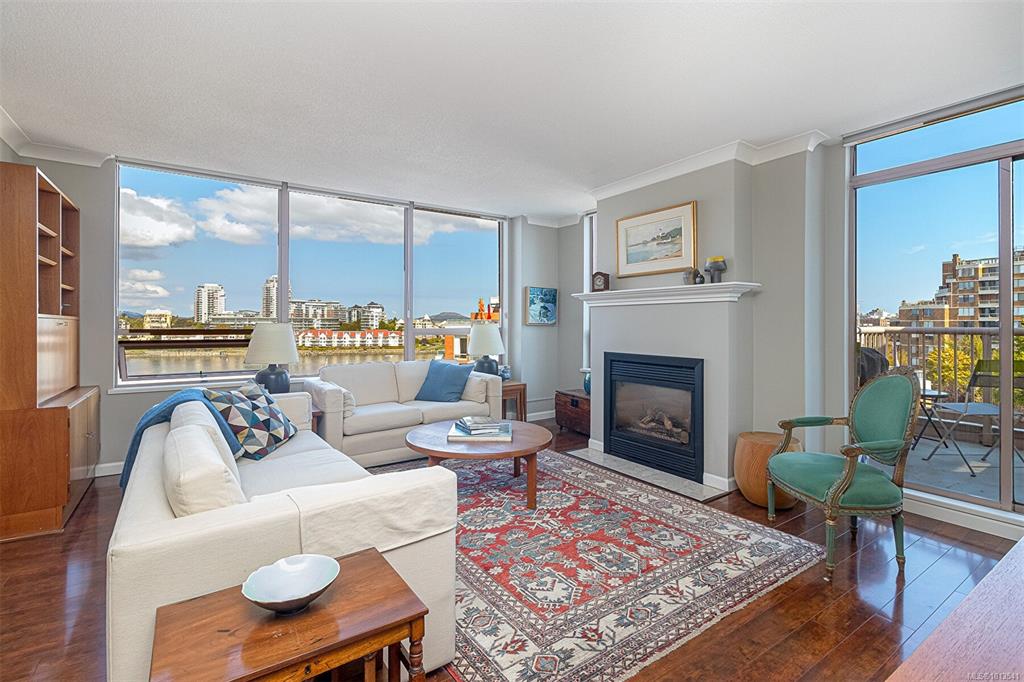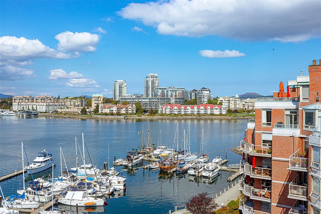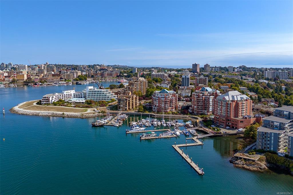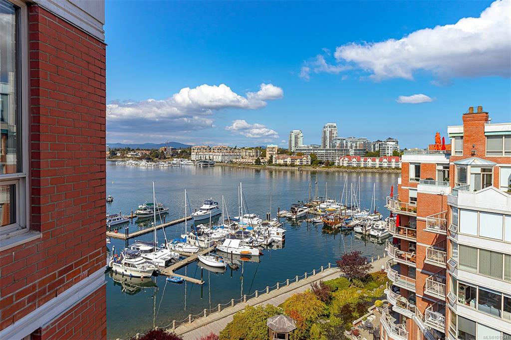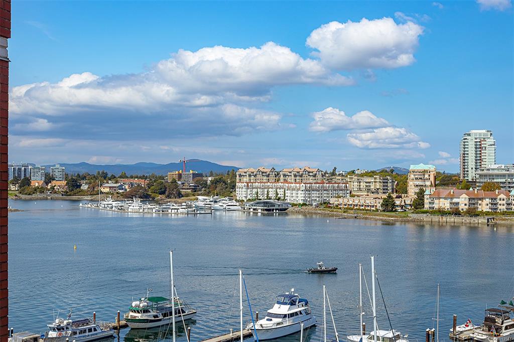 You will be impressed with this bright and beautiful 1684 sq. ft. suite in the Harbourside complex. Known for its unique water features, ponds & gardens plus complete structural integrity, the concrete and steel building is situated in an oceanfront location. Located on the 9th floor, it's a corner 2 bedroom with a den/office, modern kitchen and with warm and inviting living areas. Tucked away from the south west wind you will enjoy the views overlooking the marina, Songhees, Fairmont Hotel and the Parliame...