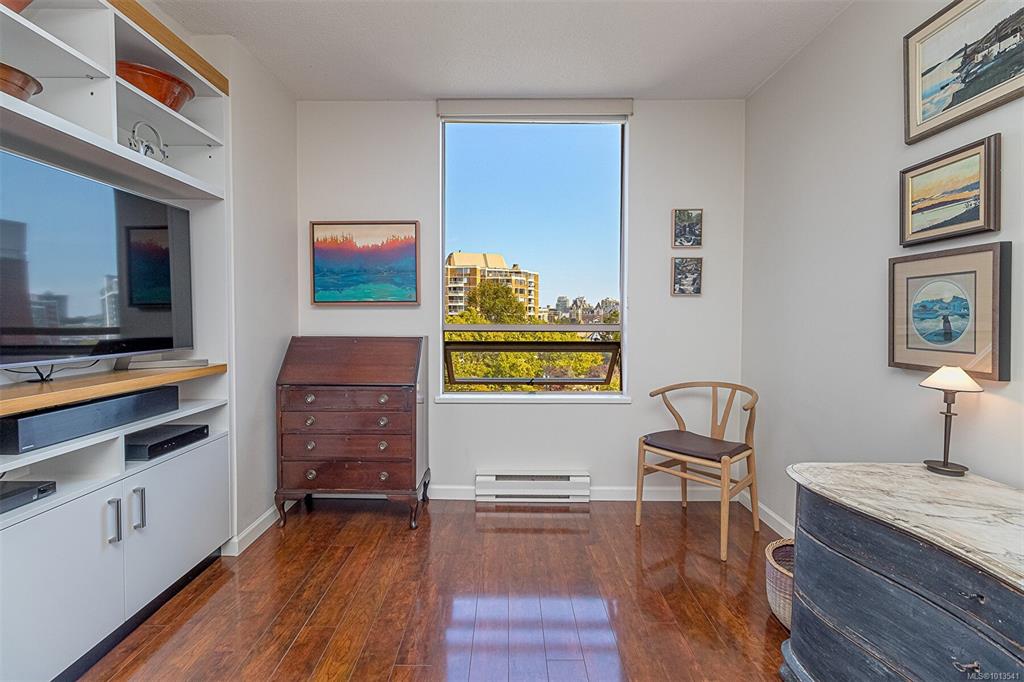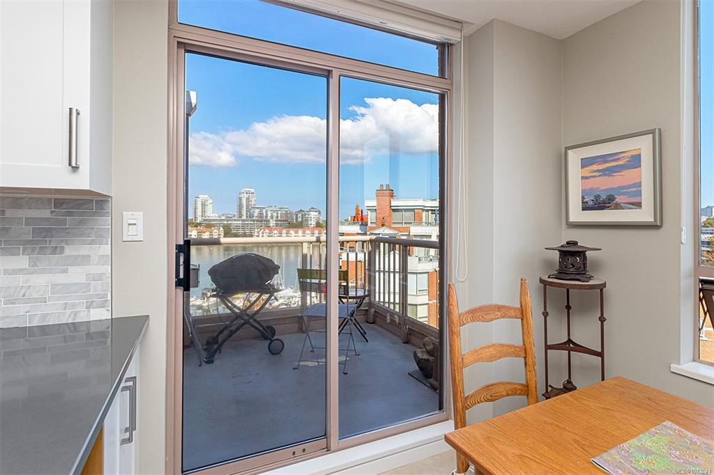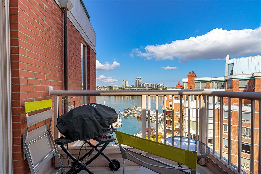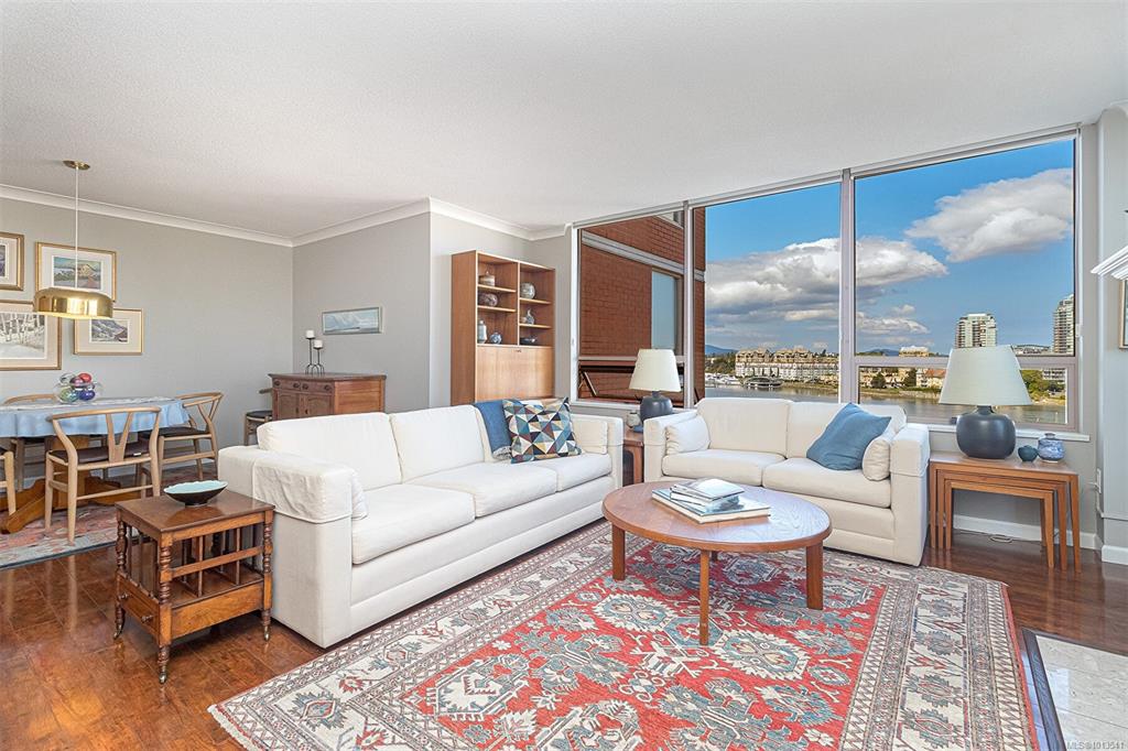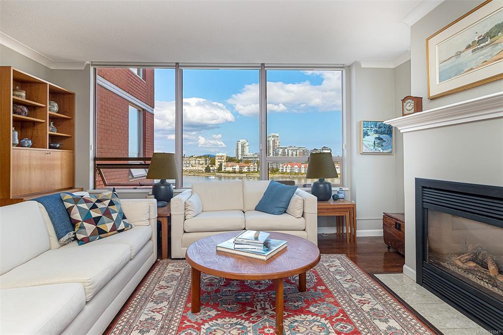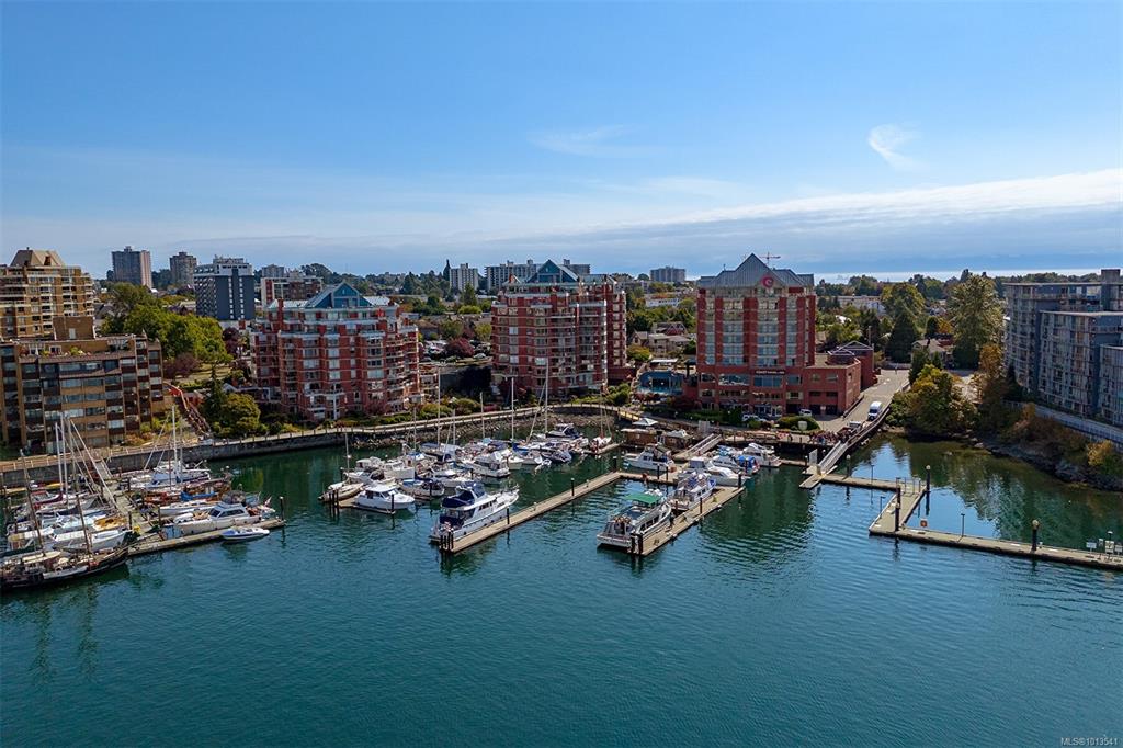 You will be impressed with this bright and beautiful 1684 sq. ft. suite in the Harbourside complex. Known for its unique water features, ponds & gardens plus complete structural integrity, the concrete and steel building is situated in an oceanfront location. Located on the 9th floor, it's a corner 2 bedroom with a den/office, modern kitchen and with warm and inviting living areas. Tucked away from the south west wind you will enjoy the views overlooking the marina, Songhees, Fairmont Hotel and the Parliame...