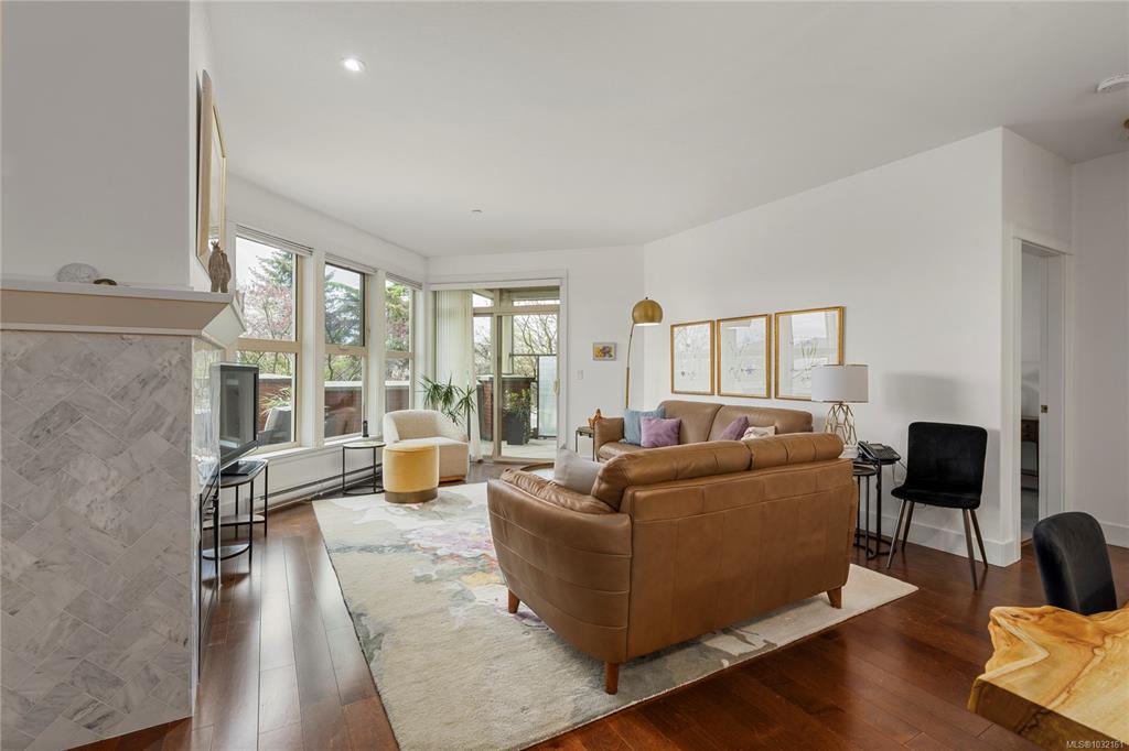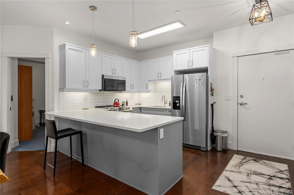 Welcome to this beautiful condo in desirable North Nanaimo. Offering two bedrooms plus a versatile den, this home is within walking distance to shopping, restaurants, schools, entertainment, and transit. Situated in the well-maintained Texada building, this unit features tasteful upgrades including refreshed bathrooms, modern fixtures, and an updated kitchen and fireplace that enhances both style and functionality. Inside, you’ll find hardwood flooring, stainless steel appliances, a kitchen pantry, and 9-fo...
