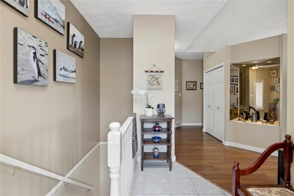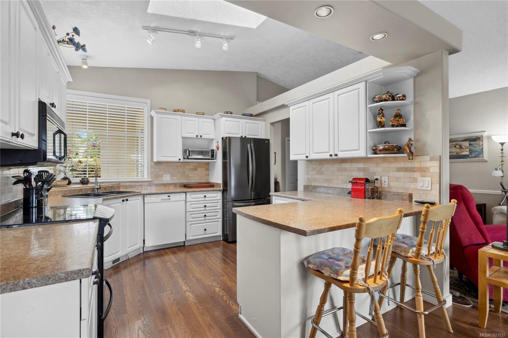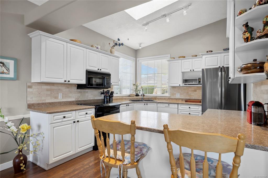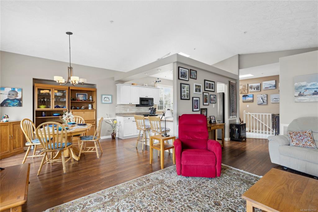 Located in the sought-after 55+ community of The Terraces, this main level entry townhouse with a walk-out basement offers a functional and comfortable layout in a prime North Nanaimo location close to all amenities. The open-concept main floor features a bright living room with gas fireplace, dining area, and kitchen with white cabinetry, an eating bar, and four appliances. Step outside to an ocean view deck off the living room or relax on the private front patio. The main level includes two bedrooms, incl...