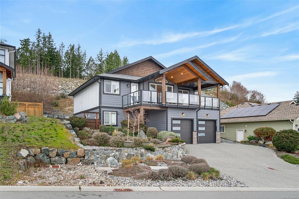 Welcome to this immaculately maintained custom home offering 180° panoramic ocean views from the large covered south-facing deck. Built in 2019, this beautiful 4-bedroom, 3-bathroom home impresses from the moment you arrive with its low-maintenance landscaped front yard and double over-height garage. Inside, the bright and open layout features vaulted ceilings in the living room, flowing seamlessly to the outdoor deck—perfect for enjoying the view. All upstairs bedrooms include walk-in closets for excellen...