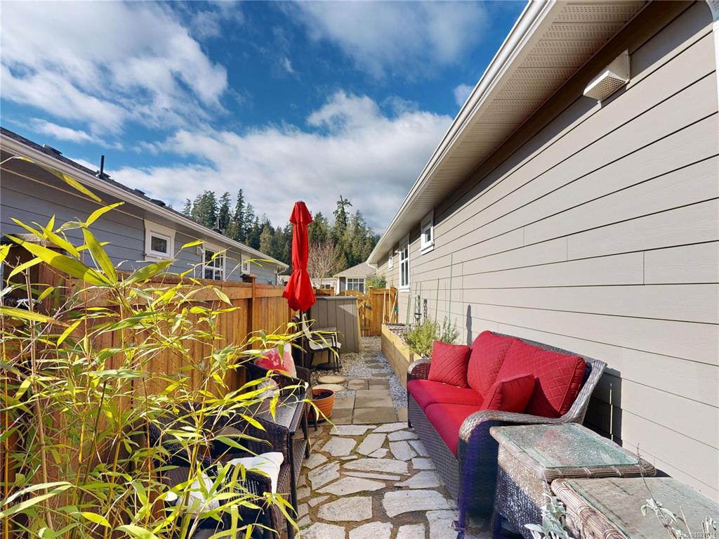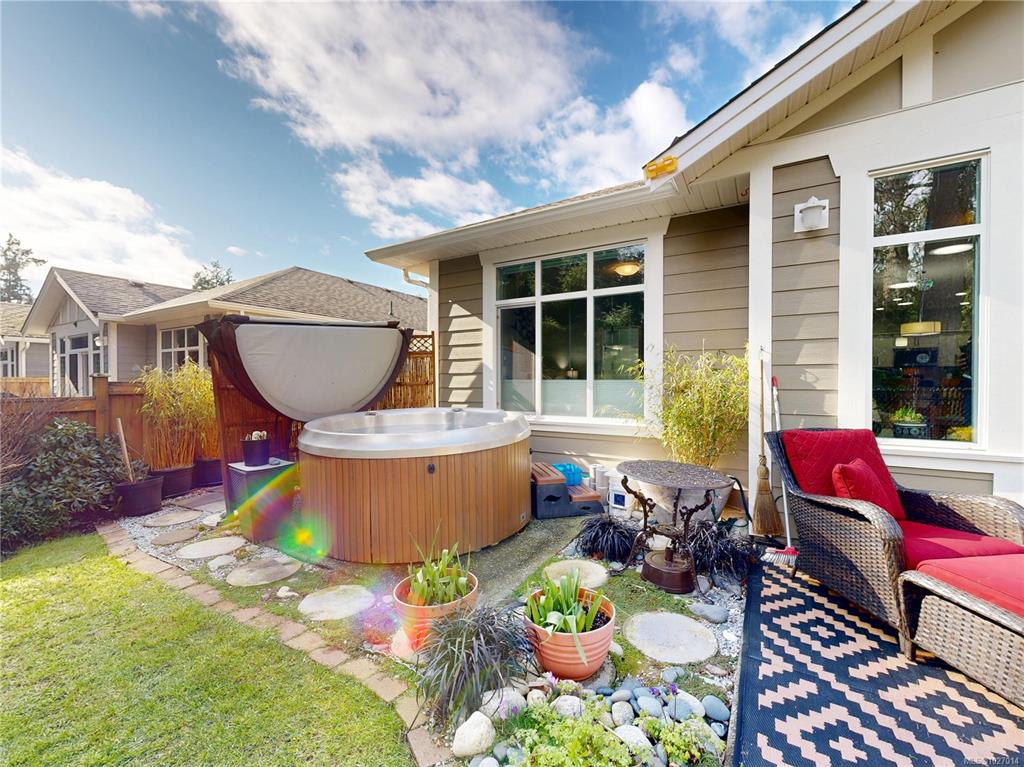 RiversEdge Village, an inspired gated, adult oriented community at Sunriver Estates is surrounded by Park land, Trails and the Sooke River. Immaculate 3 bedroom 2 bath rancher backing forested rear (1,171 sq. ft.) situated on a 5048 sq.ft. lot that has plenty of sun. The master suite with large walk-in and 3 piece ensuite. Separate Main 4 piece bathroom A single car garage and additional room for a workshop. This patio style home has spacious kitchen with quartz counters and of white cabinets, and open con...