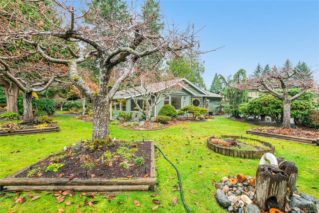 Charming Qualicum Beach Rancher in a Garden Oasis. Privately nestled in the heart of Qualicum Beach, this beautifully updated rancher sits on an exceptional .29-acre lot (104' x 122') just a short stroll to all the boutique shops, cafés, & all amenities. A true hidden treasure, this property has been featured in multiple garden tours. Award-winning gardens, the property features a peaceful pond, an artist studio, back lane access, RV parking potential, and two large covered patios ideal for year-round enjoy...