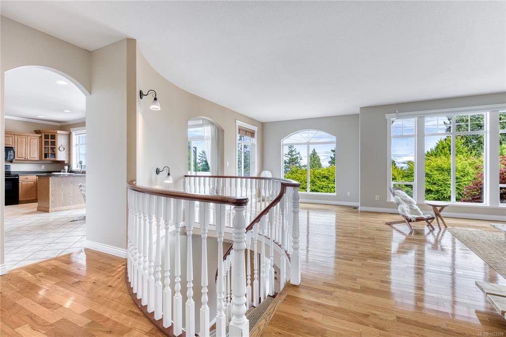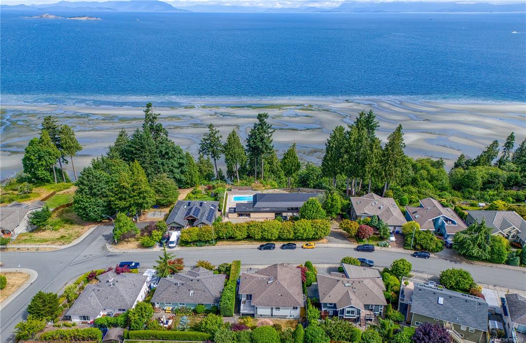 Semi-waterfront Eagle Point home with breathtaking ocean and snow mountains views, directly across from Lewis Beach Park and steps from beach access trails. Minutes from Woodgrove Mall, Costco, and top schools, this 5-bedroom home blends coastal charm with urban convenience. The main level boasts hardwood floors, a gas fireplace, a curved staircase, a dedicated office, two additional flexible-use rooms, and the primary bedroom, which features a walk-in closet, rear deck access, and a luxurious 4-piece ensui...