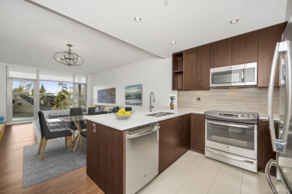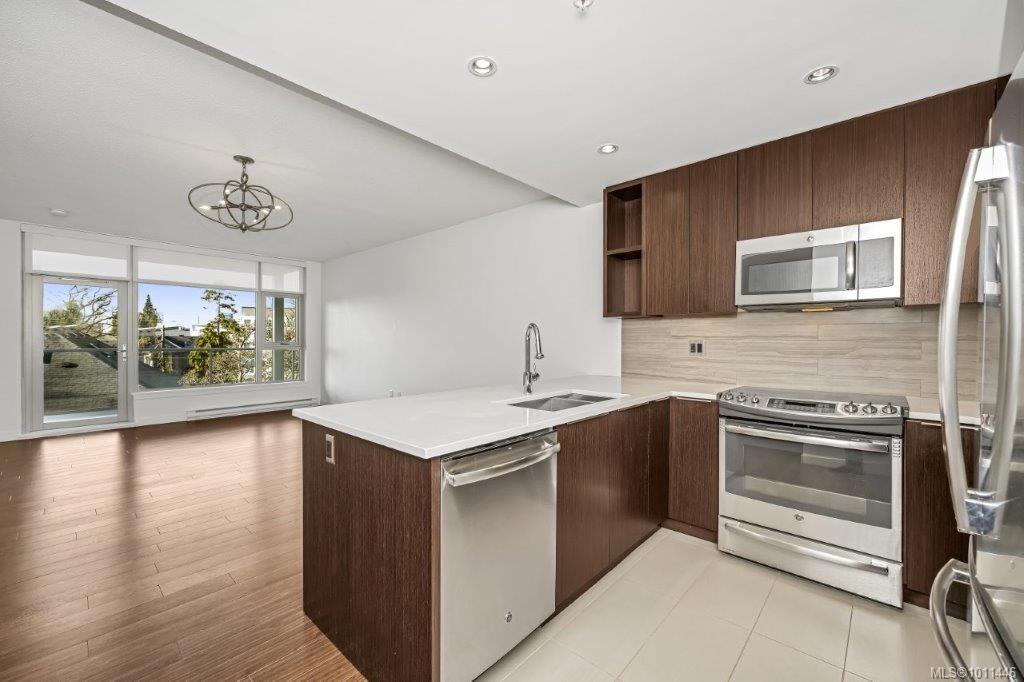 Downtown is your playground at unit 303 in The Duet! An unmatched location in the heart of James Bay, your unit is steps from Beacon Hill Park, the Royal BC Museum, the Inner Harbour and countless retail and restaurant options to explore. This bright 1-bedroom condo boasts a sleek modern kitchen with stainless steel appliances and a peninsula breakfast bar that transitions seamlessly into the open living space. A 4-piece bathroom with soaker tub awaits just past your walk-through closet off the bedroom. Enj...