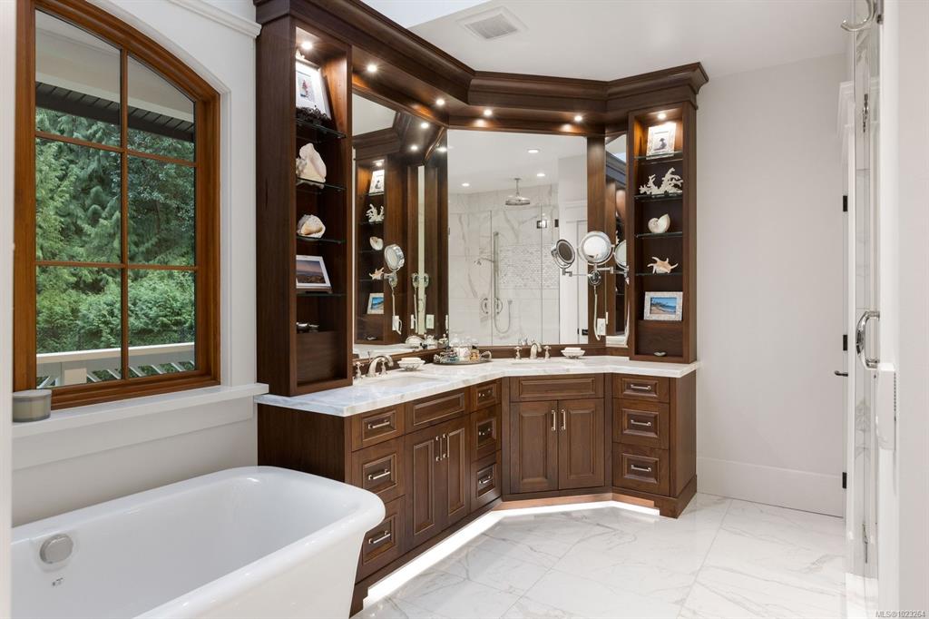 Private, quiet, one of a kind, quality built, luxury rural retreat in beautiful Highlands, 25 mins from downtown Victoria. Featuring close to 3.5 acres, this home is an absolute pleasure to come home to. With close to 8000 sqft, 7 bedrooms and 9 bathrooms it is an entertainer's dream with a gorgeous chef’s kitchen (Wolf stove, SubZero fridge, Miele coffee maker and dishwasher), walk-in wine rm, separate DR, indoor and outdoor sitting areas. The main home has lovely walnut hardwood floors, heat pumps, high-e...