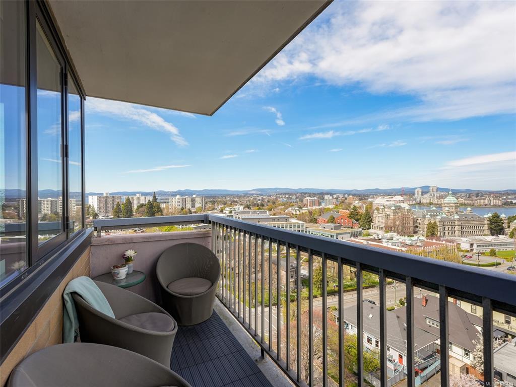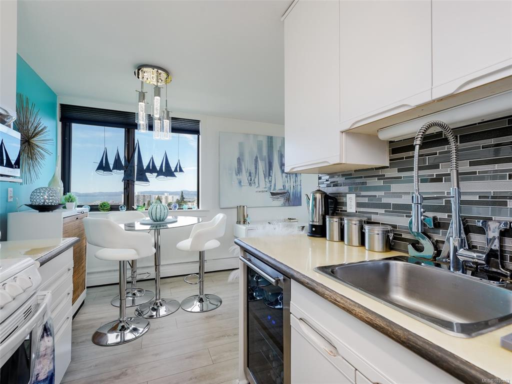 Northwest corner unit overlooking the Inner Harbour & city skyline, this stunning 1-bed at Orchard House delivers a breathtaking panorama — snow-capped Olympics, Strait of Juan de Fuca, city lights & cruise ships berthing, all from your large balcony finished with composite deck tiles. Freshly updated with custom power blinds, newer laminate flooring, fresh paint, tiled kitchen backsplash, upgraded light fixtures & newer toilet. Stainless steel bar & wine fridge included! Just 10 minutes walk to James Bay's...