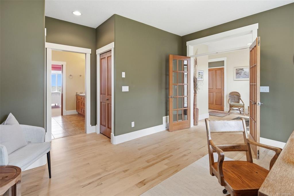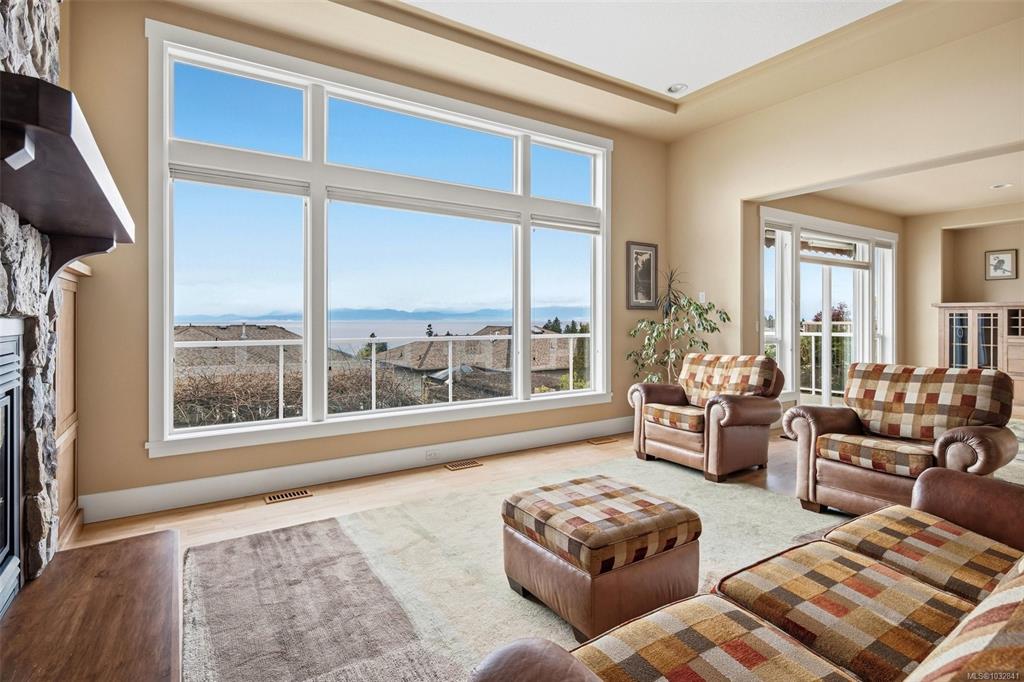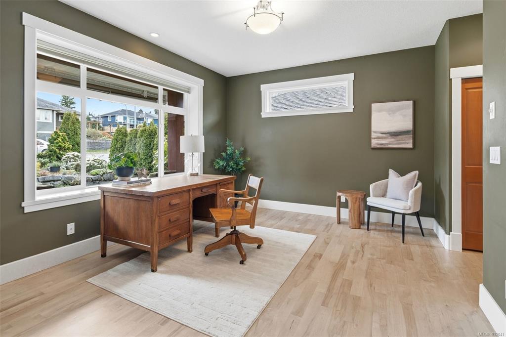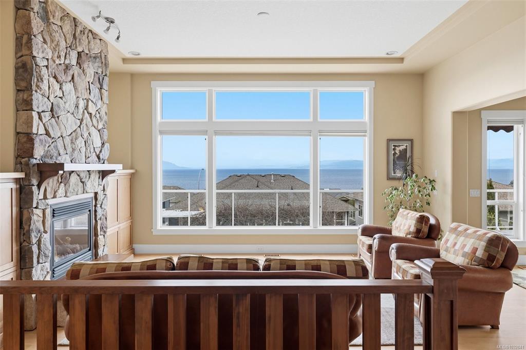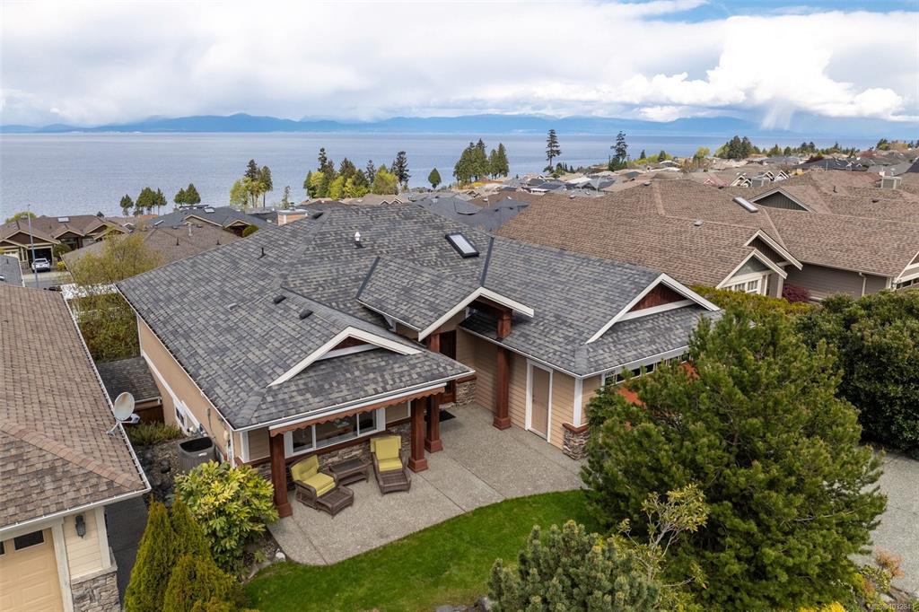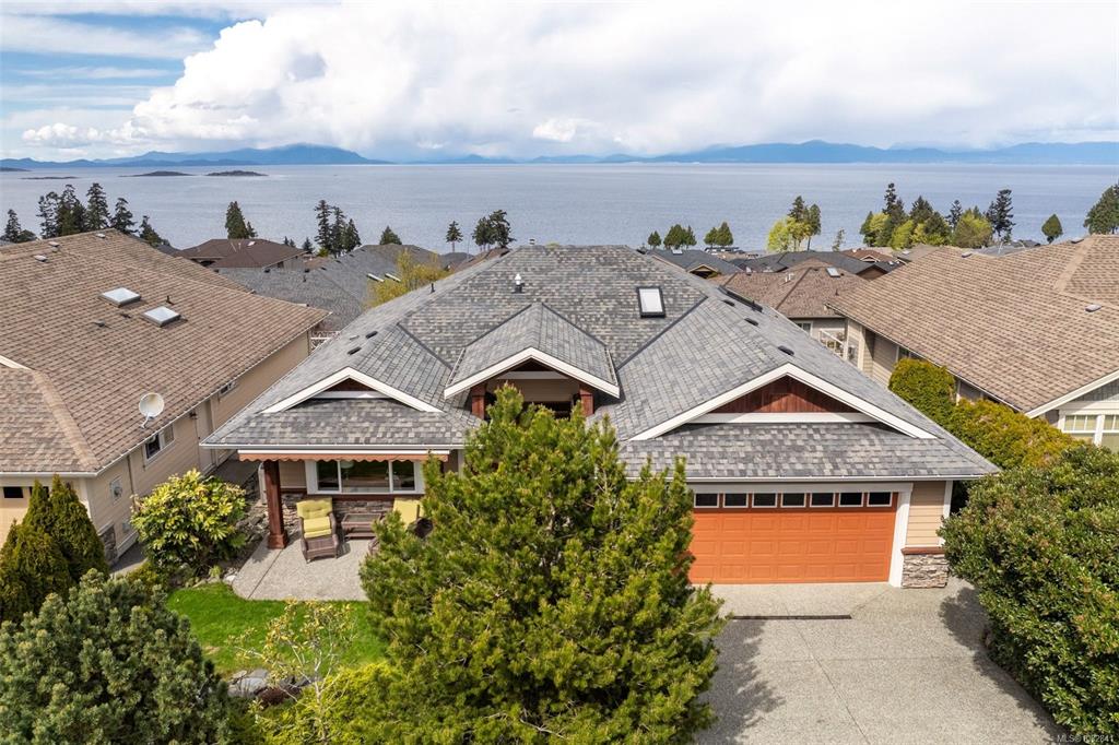 Perched on a quiet cul-de-sac, this custom-built executive rancher is offered for the first time, capturing sweeping panoramic ocean views and a sense of permanence. Thoughtfully designed, the main level unfolds with nearly 10’ ceilings, natural light, and a seamless connection between the great room, dining, and kitchen, creating an atmosphere that feels open yet grounded. Timeless materials hardy plank siding, silestone, rich wood cabinetry, and hardwood floors reflect the quality of its construction, whi...