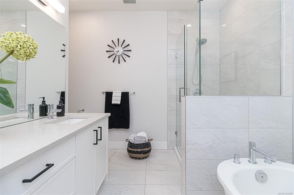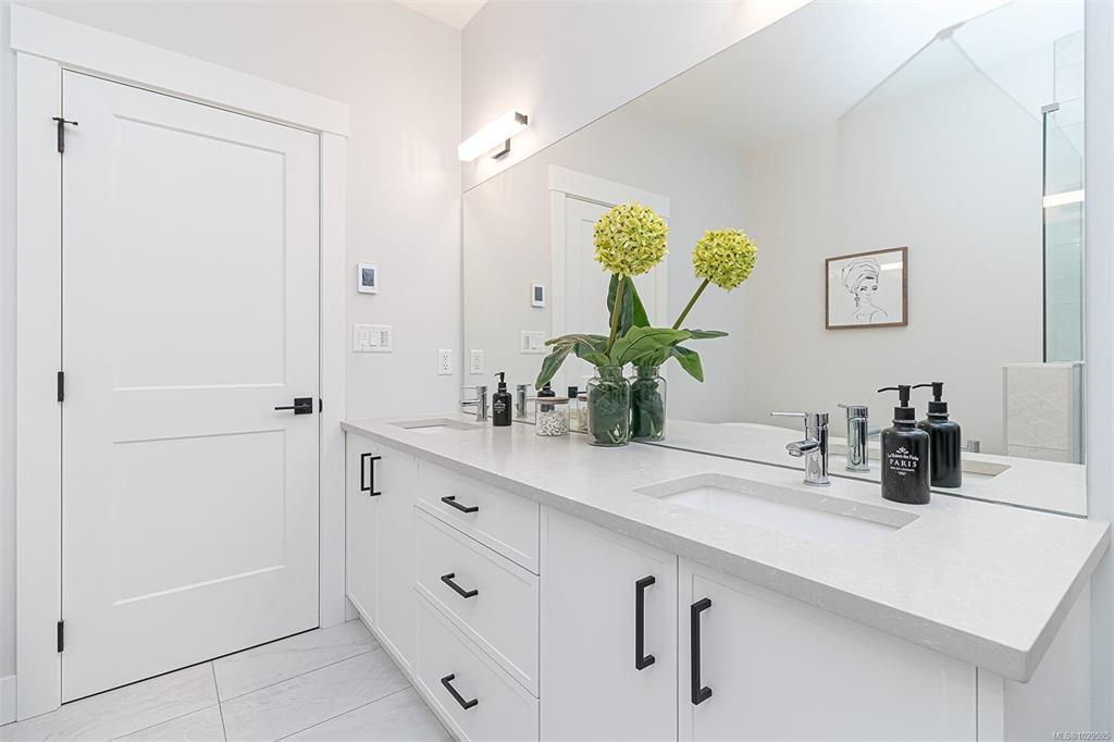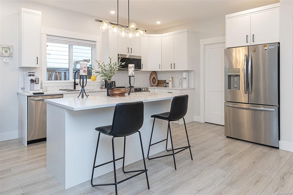 Lot 15 Noblewood - the Redwood. Incredible curb appeal and architectural features in this new home in popular Woodland Creek neighbourhood central Sooke! This home starts with an airy vaulted foyer and cozy den/office/ or possible 4th bedroom. Carry on to a spectacular kitchen w/solid surface countertops and large island, designer kitchen faucets & hardware, walk-in pantry & s/s appliances. In-line dining room leads to sunlit vaulted living room w/linear fireplace & access through french doors to covered p...