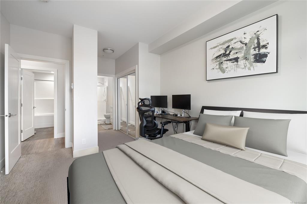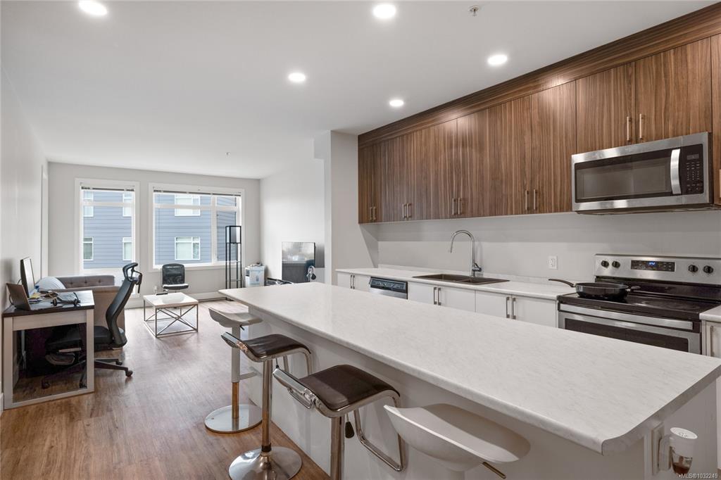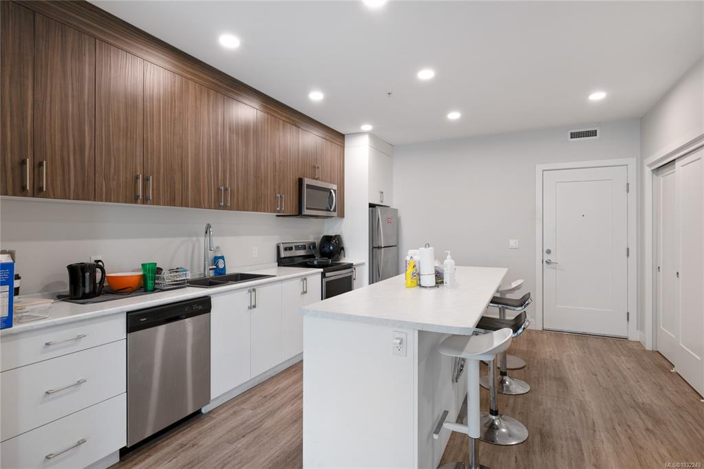 This exceptional condo in North Nanaimo is perfectly positioned to capture stunning ocean and mountain views while offering unparalleled walkability. Just a short stroll away, you'll find over 200 amenities, including health and wellness clubs, pet services, restaurants, grocery stores, a boutique butcher and bakery, and Woodgrove Mall offering a variety of storefronts. This beautifully designed 2-bedroom, 2-bathroom unit boasts a spacious, modern layout with 9-foot ceilings, an open-concept floor plan, and...
