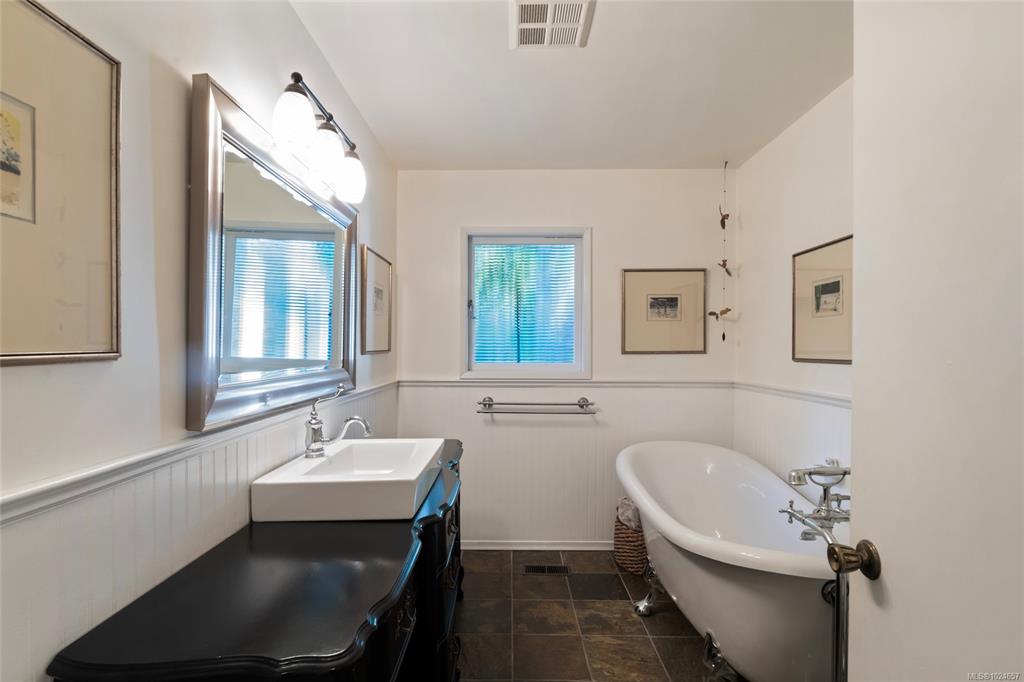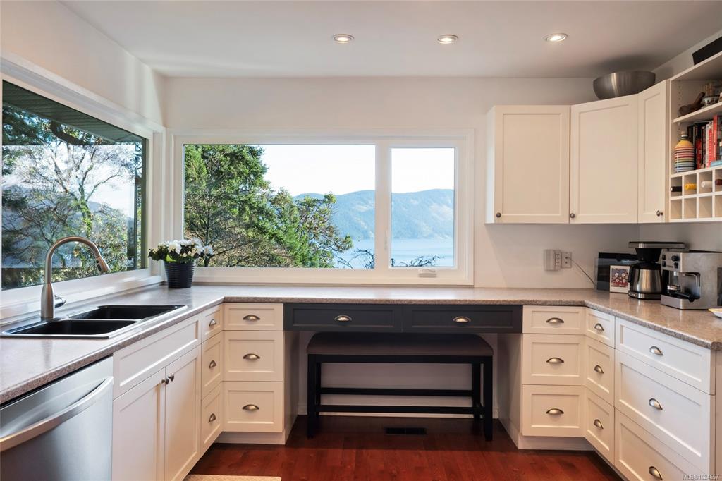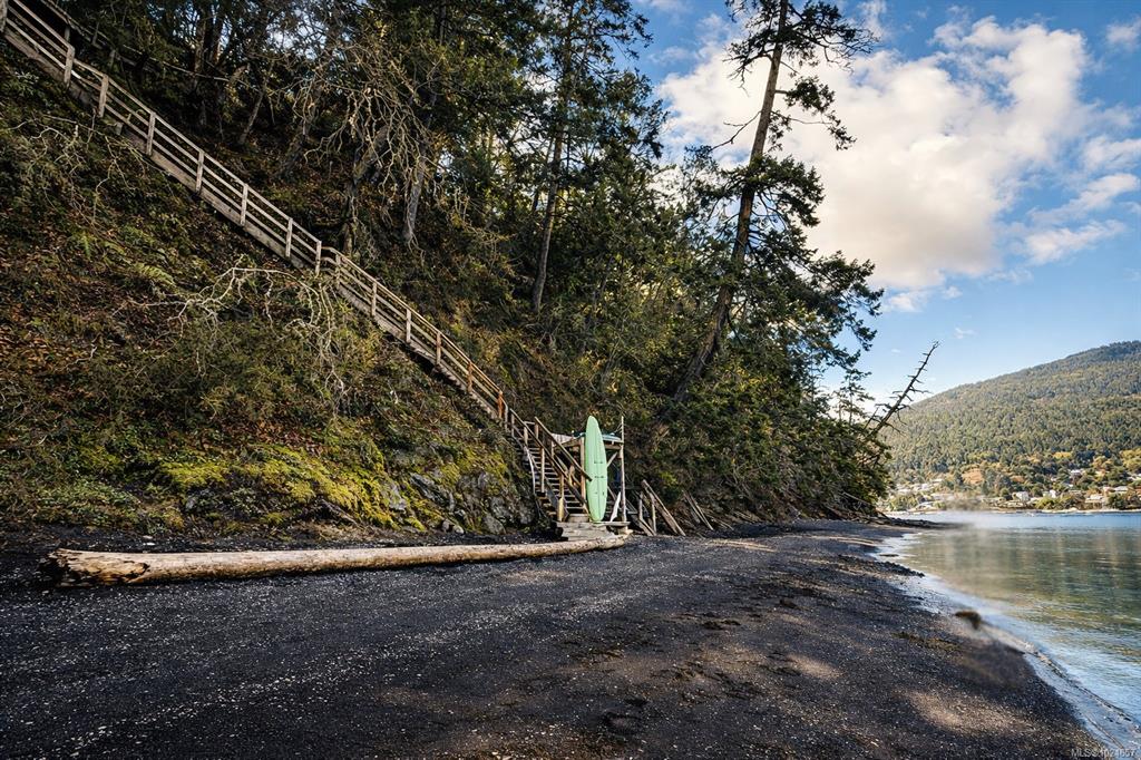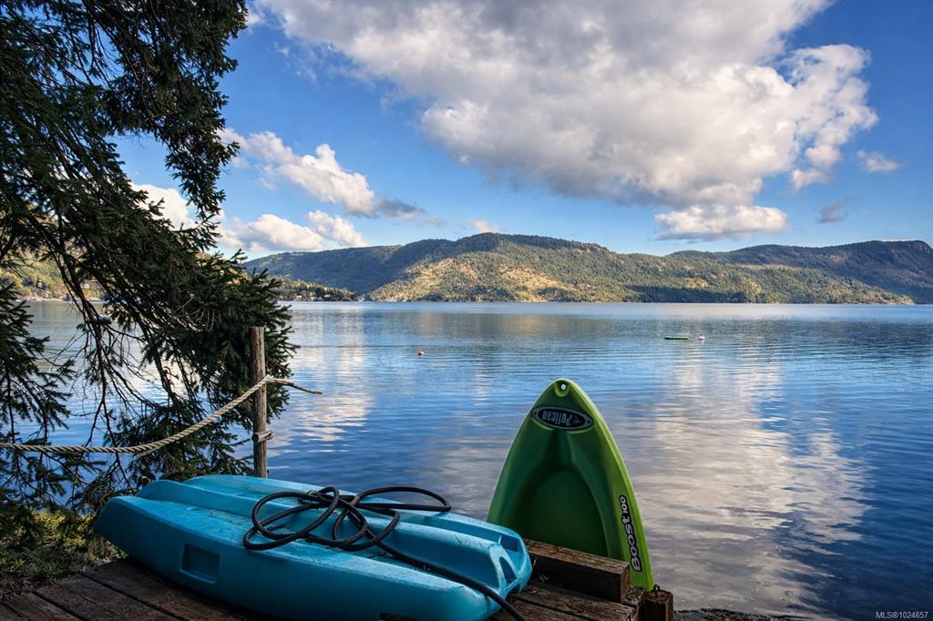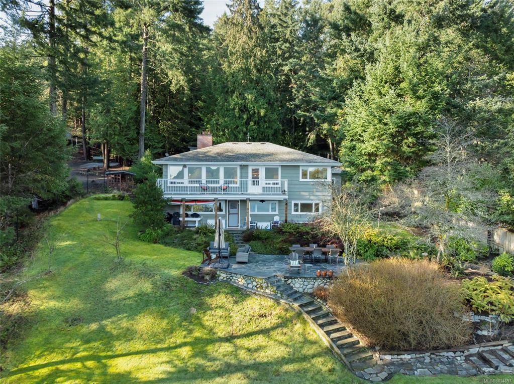Set along the coveted shores of Maple Bay, this remarkable oceanfront property captures the essence of West Coast living with a rare balance of privacy, walkable convenience & timeless mid-century charm. The 2706sqft residence offers 4 beds, 3 baths, plus a detached 510sqft studio on a beautifully landscaped, fenced & gated 1-acre parcel overlooking sweeping ocean views toward Mt Maxwell—famously inspiring E.J. Hughes’ Above Maple Bay. A path leads to the beachfront where a private mooring buoy rests, invit...