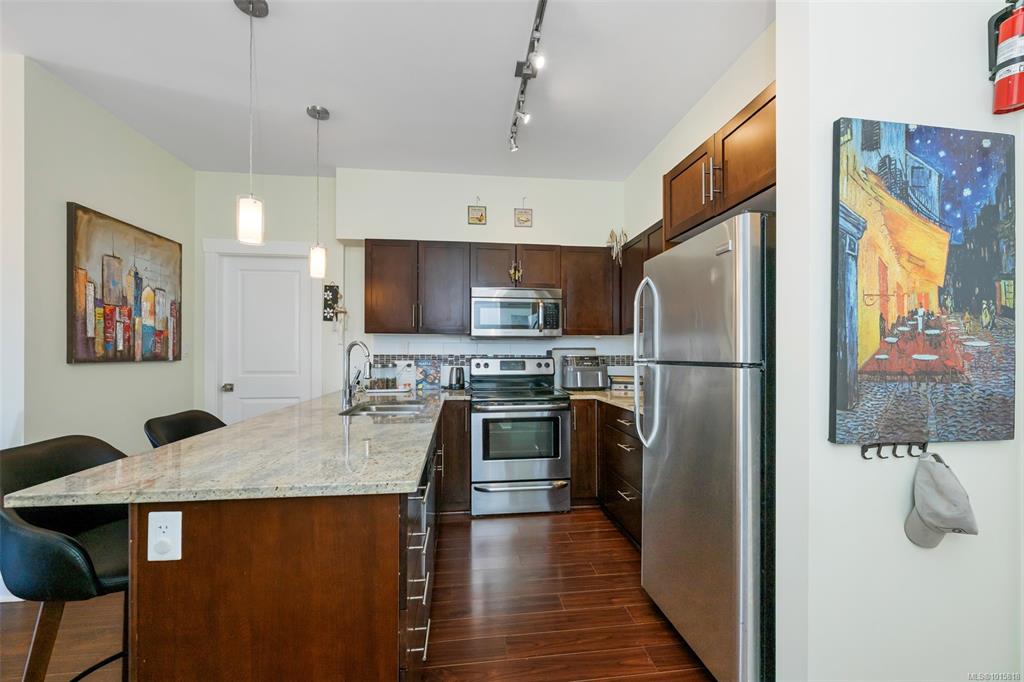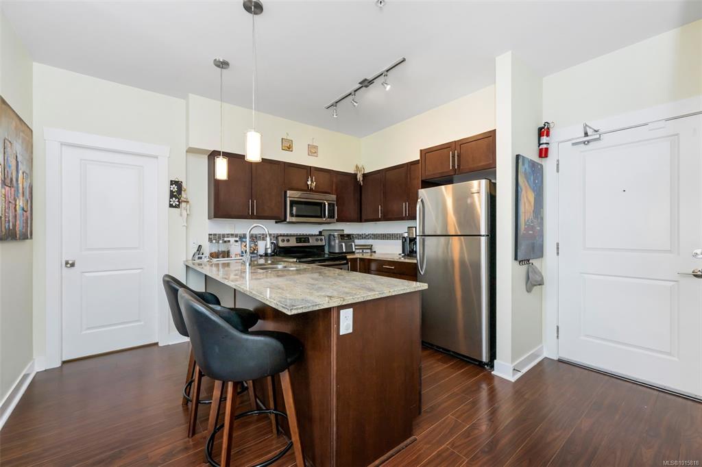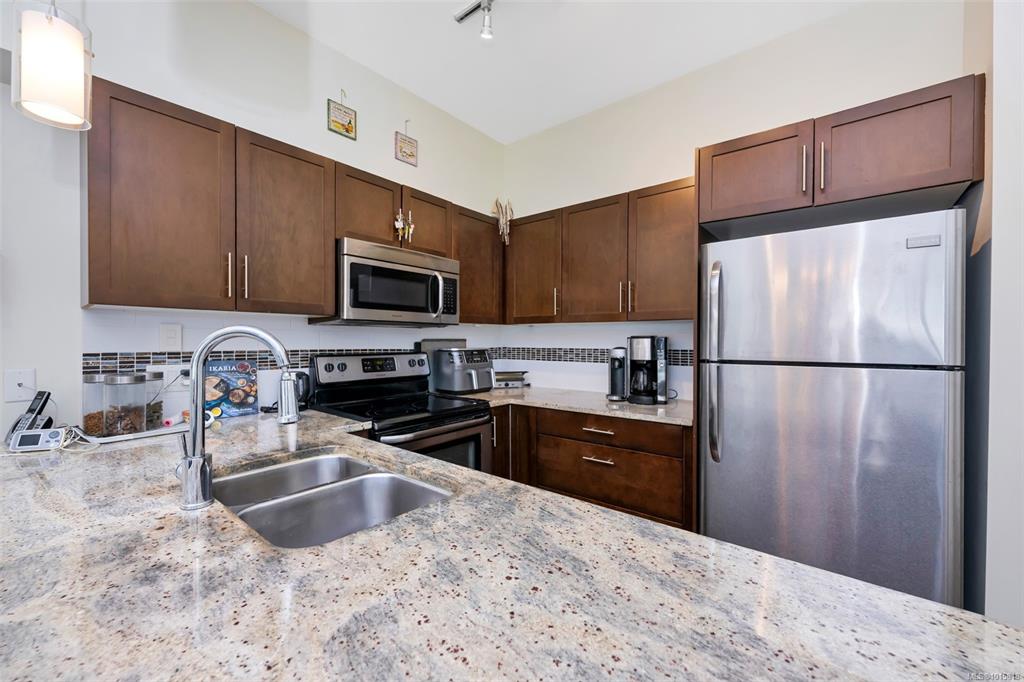 Open House Sunday 1-3pm. Welcome to top-floor living at The Granderson! This immaculate 2-bed, 2-bath suite offers a bright, open layout perfect for modern living. The kitchen shines with granite countertops and an eating bar, flowing seamlessly to a living area and sundeck overlooking Bear Mountain. The smart floor plan separates the bedrooms for maximum privacy. Your backyard is the famous Galloping Goose trail, and you're just a stroll away from the Royal Colwood Golf Course and the heart of downtown Lan...