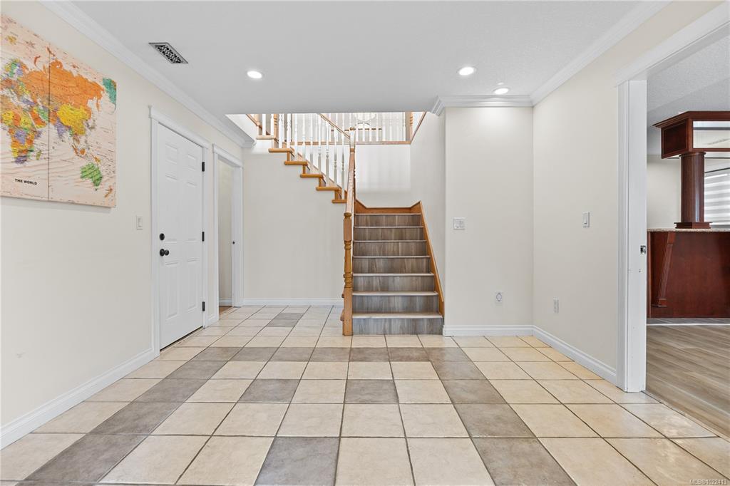 Located in notable community of North Nanaimo, this custom-built home sits on flat, private lot within walking distance to beaches, shopping mall, parks, schools. Offering over 3,300 sq ft living space, it features 6 bedrooms & 4 bathrooms, including a legal one-bedroom suite w/ separate entrance, ideal for extended family/rental income. Main level welcomes you with a gracious foyer, 9 ft ceilings, hardwood flooring, crown molding, skylights, large windows providing abundant natural light. Kitchen is well d...