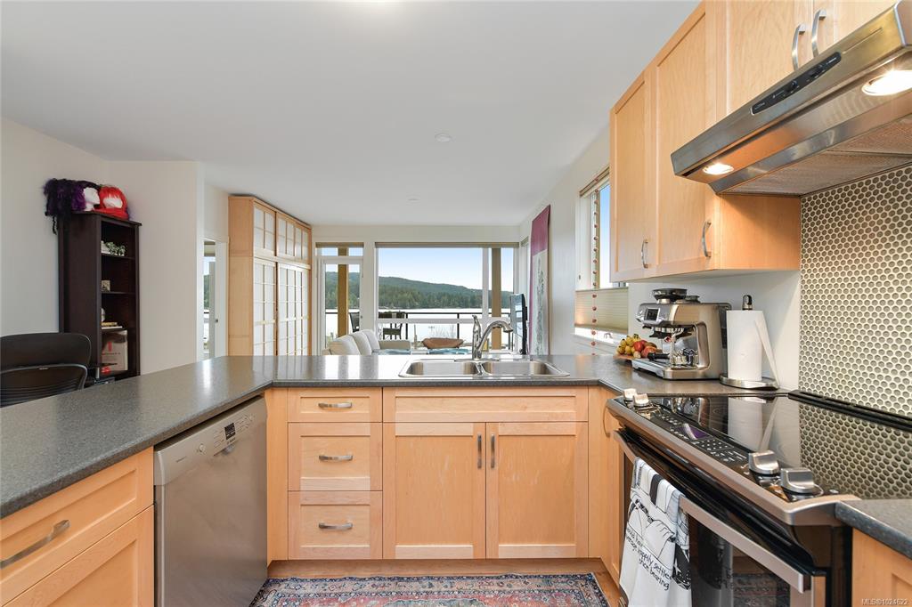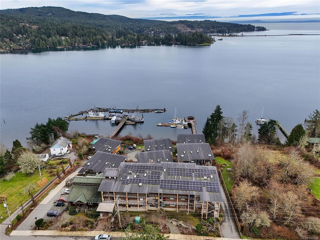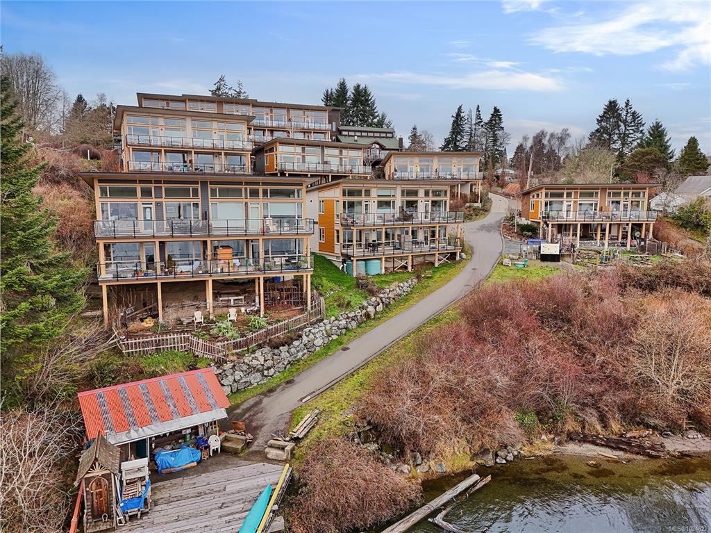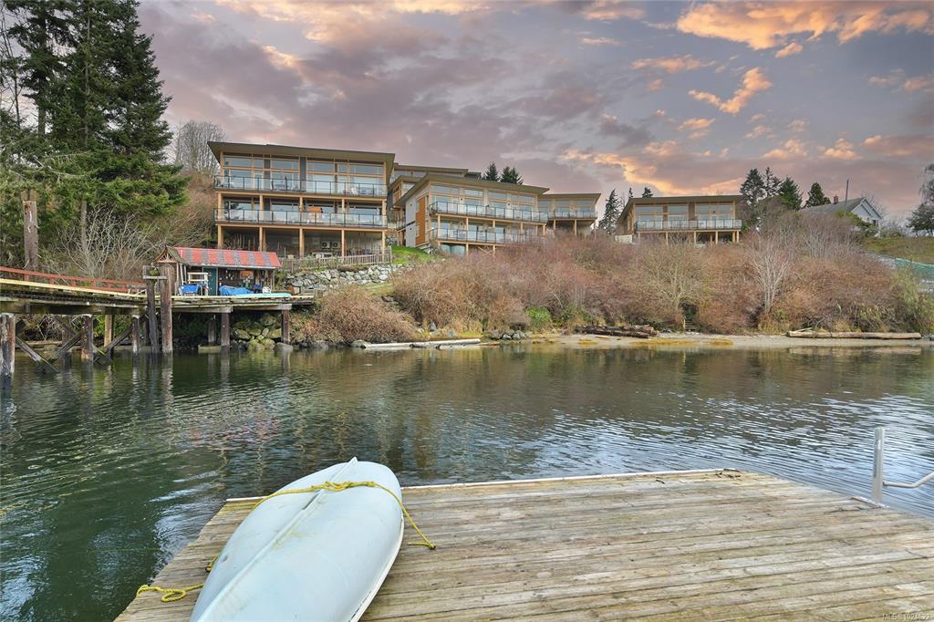 **OH Saturday 1-3** Wake up to oceanfront calm, where privacy, nature, and a sense of belonging quietly shape daily life. This thoughtfully designed home offers 2 bedrooms, 1 spacious bathroom plus a powder room, a large kitchen with generous storage, and in-suite laundry. Enjoy your own private walk-up entrance, offering the ease and feel of a townhouse! From your dining table, watch boats drift by, or step onto the expansive south-facing deck and feel the ocean breeze roll in. Swim from the private dock w...