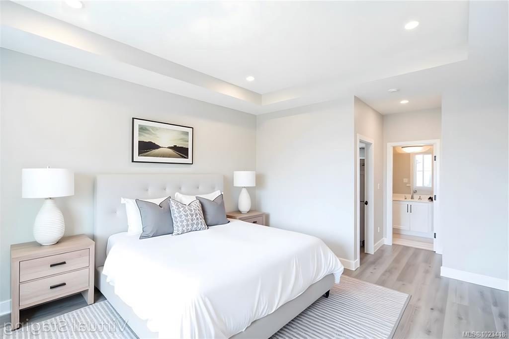 At this enchanting location discover impressive amenities & a rare 1 bed legal suite. Enjoy forest & ocean views from the primary bedroom, living room and back deck. The kitchen offers elegant white cabinetry with soft-close drawers/ doors, under-cabinet lighting, & luxurious quartz countertops & backsplash. A tray ceiling in the living room enhances the spacious feel, complemented by durable laminate flooring and stylish tile in the bathrooms. Additional highlights include 9’ ceilings, an on-demand hot wat...