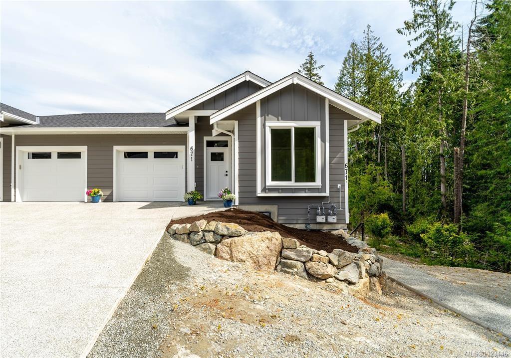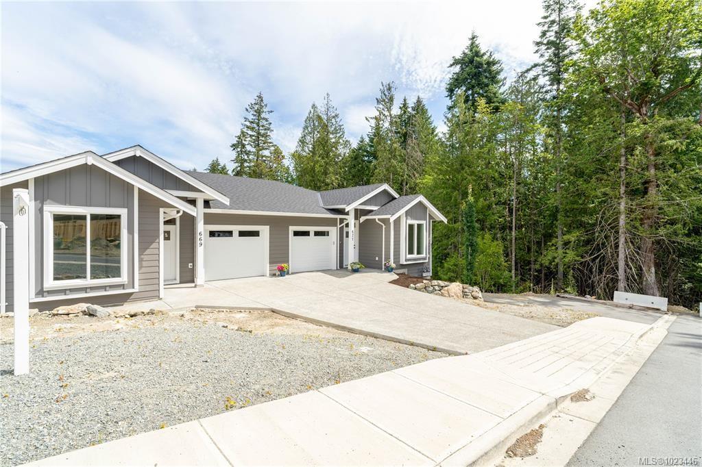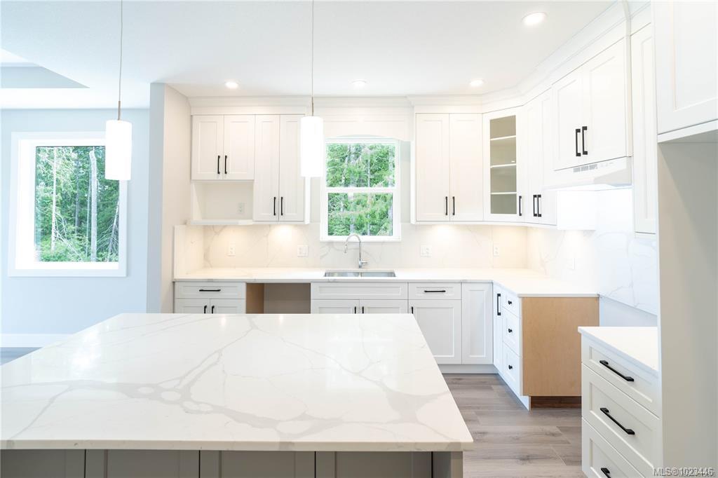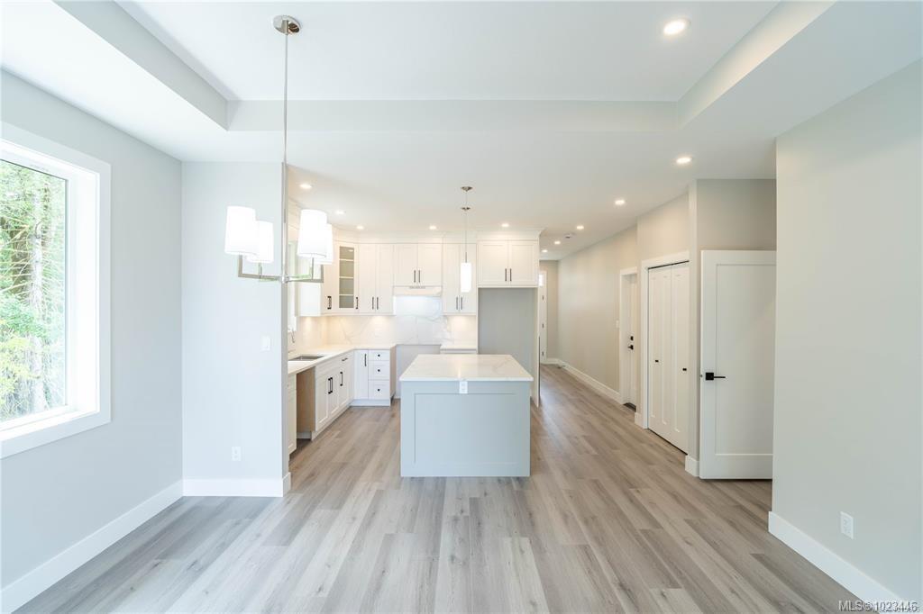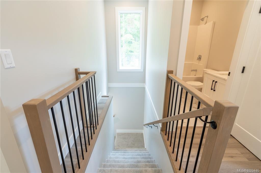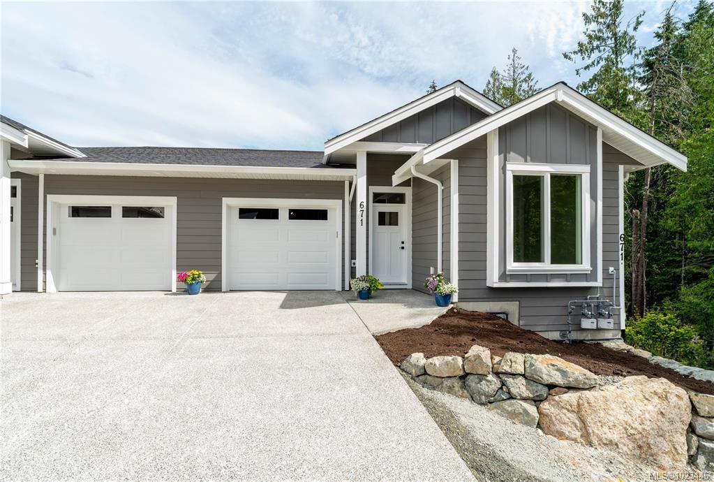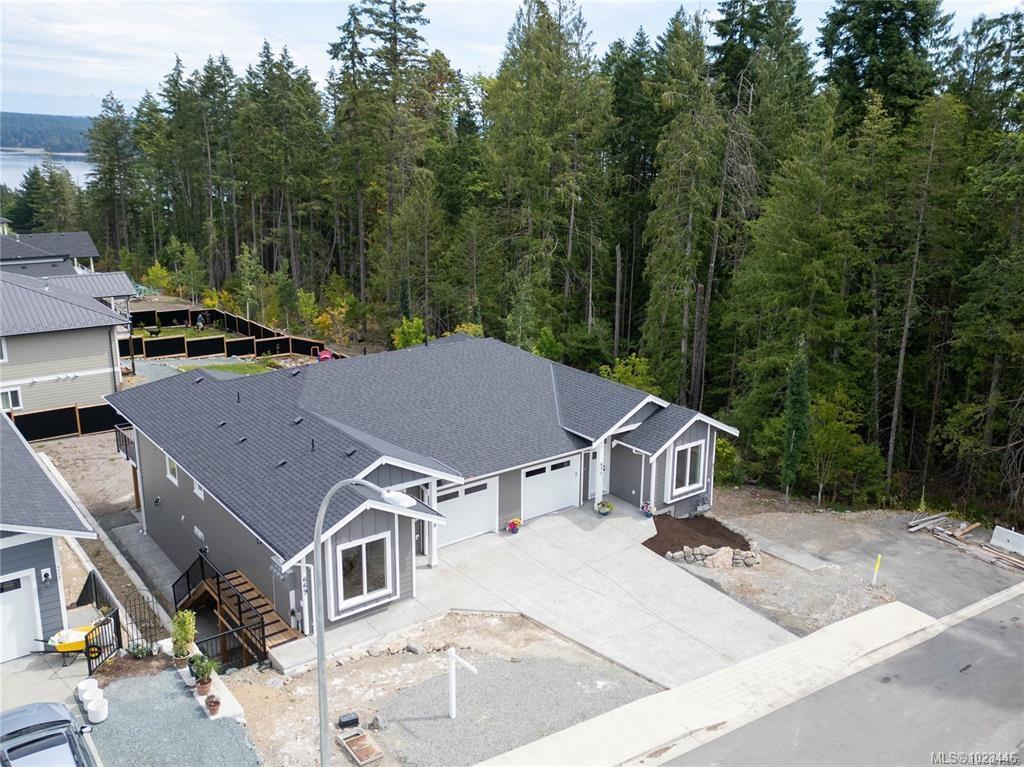 This half duplex home features impressive amenities, a rare 1 bed legal suite and zero strata fees. Enjoy ocean & forest views from the living room, kitchen, primary bedroom, and back deck. The kitchen offers elegant white cabinetry with soft-close drawers/ doors, under-cabinet lighting, & luxurious quartz countertops & backsplash. A tray ceiling in the living room enhances the spacious feel, complemented by durable laminate flooring and stylish tile in the bathrooms. Additional highlights include 9’ ceilin...