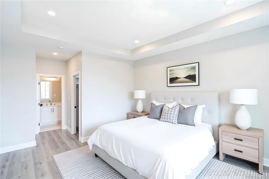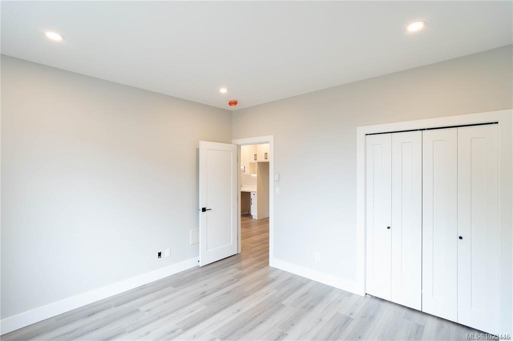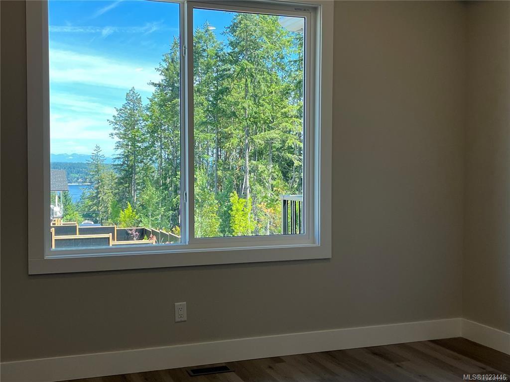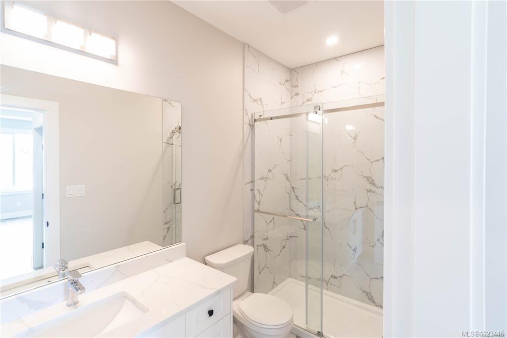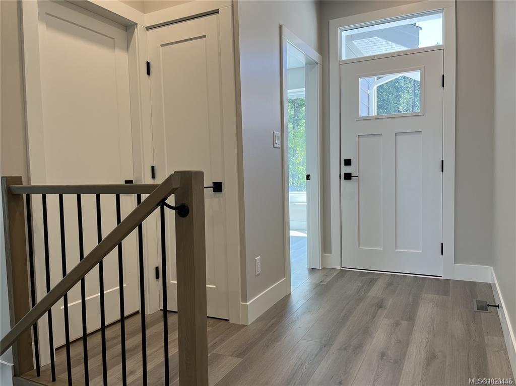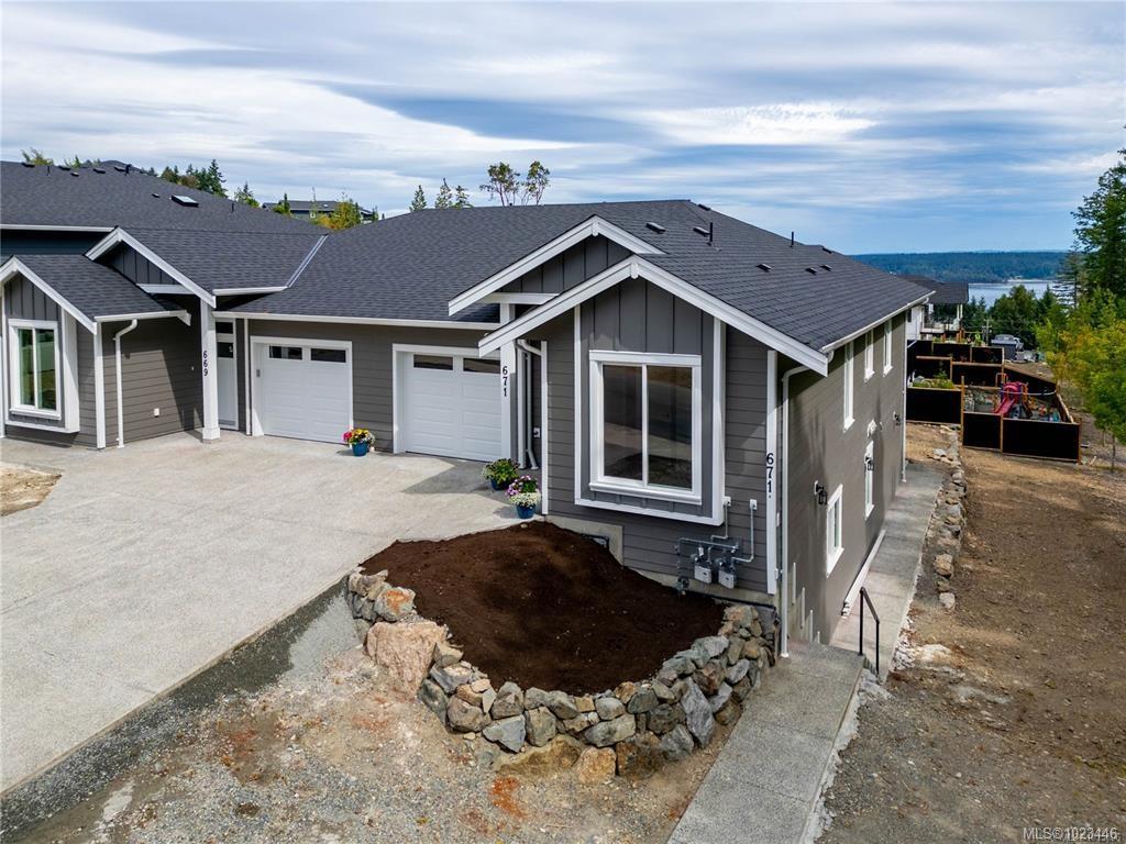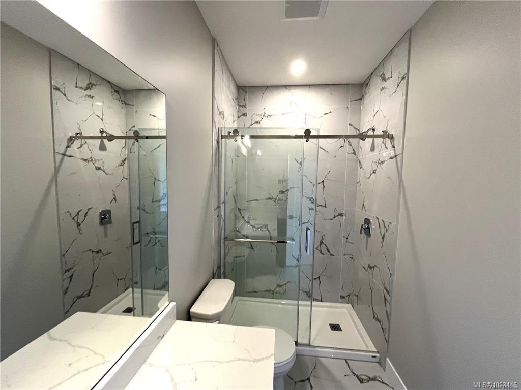 This half duplex home features impressive amenities, a rare 1 bed legal suite and zero strata fees. Enjoy ocean & forest views from the living room, kitchen, primary bedroom, and back deck. The kitchen offers elegant white cabinetry with soft-close drawers/ doors, under-cabinet lighting, & luxurious quartz countertops & backsplash. A tray ceiling in the living room enhances the spacious feel, complemented by durable laminate flooring and stylish tile in the bathrooms. Additional highlights include 9’ ceilin...