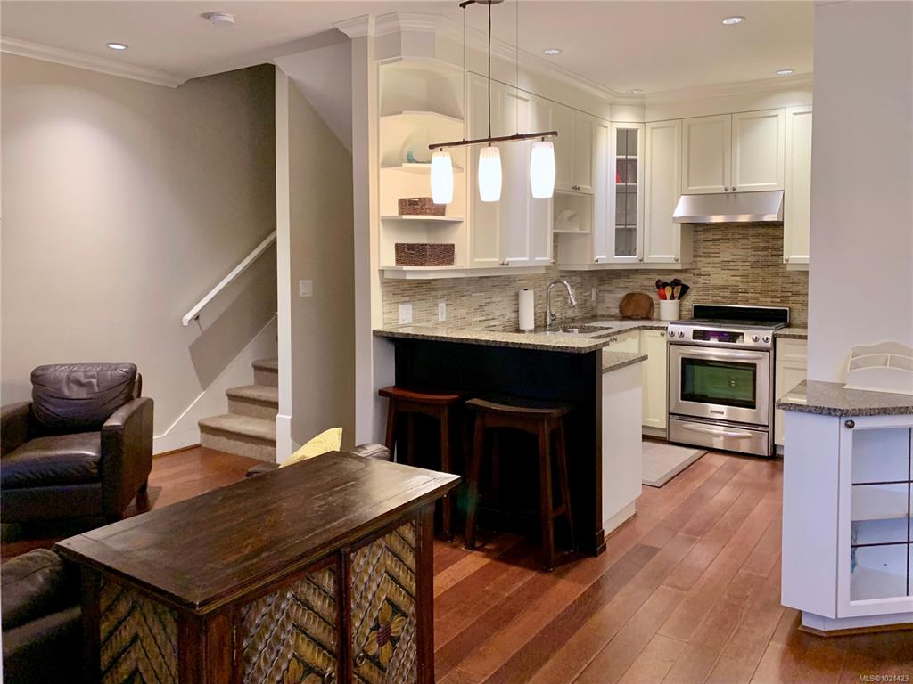 This elegant 3-bed, 2.5 bath brownstone-style townhouse offers almost 1800 sq/ft of refined living on 3 levels and is ideally positioned just steps from Beacon Hill Park, the Royal BC Museum, Parliament, and Inner Harbour. The main level showcases a gourmet kitchen with granite counters and stainless Kitchen Aid appliances, a gas range, breakfast bar, heated hardwood floors, an electric fireplace, and lovely east-facing views toward the park. French doors extend the living space onto an expansive patio with...