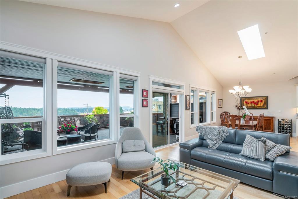 Not your typical condo. This one just feels like home. Perched in desirable Brechin Hill with ocean and coastal mountain views, this executive 2 bed PLUS spacious den, 2 bath residence offers the space downsizers and professionals crave with true lock and leave ease. Cathedral ceilings, skylights, and expansive windows flood the home with natural light, while the open layout connects a chef inspired kitchen with gas range to generous dining and living areas finished with quartz countertops, premium cabinet...