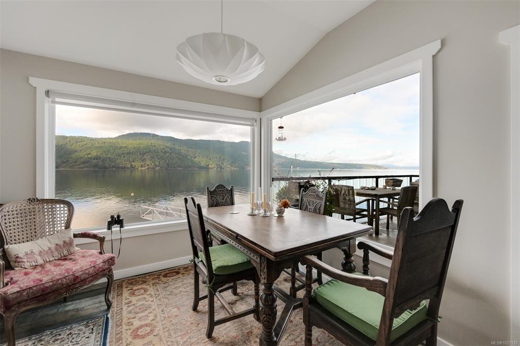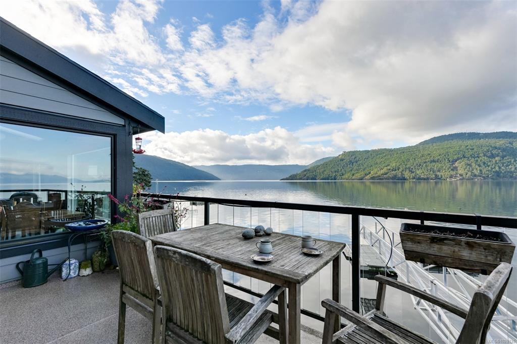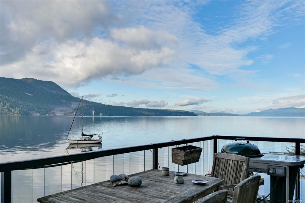 Willis Point WATERFRONT. Stunning, 2019-built 2-bed, 3-bath custom home by Yager Construction, with spectacular oceanfront views from every room. 2 balconies, WHARF & DOCK. Deep water moorage with Foreshore Rights. Saanich Inlet is a glacially carved fjord, lying between the Saanich Peninsula and the Malahat, enjoying a warm surface yet deep cool depth of 226 meters, attracting an abundance of marine life: from otters to sealions, herons to eagles. Calm waters draw paddleboarders, anglers, prawners and plea...