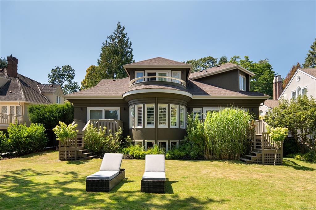 Welcome to 683 Mountjoy Avenue, a beautifully updated 5,095 sq. ft. home on one of South Oak Bay’s most sought-after streets. Set on a private 10,535 sq ft lot, this elegant residence blends timeless design with modern upgrades. The main floor features a vaulted foyer, formal living and dining rooms, a large mudroom, private office, and a stunning kitchen with quartz counters, custom cabinetry, and premium appliances, flowing into the family room and bright eating area. Upstairs, find three bedrooms includi...