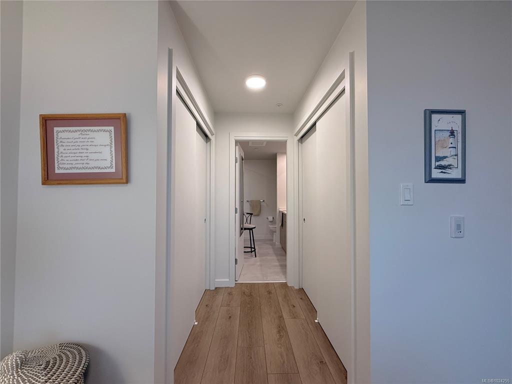 Welcome to this newer ocean view condo offering the perfect blend of contemporary design, comfort, and lifestyle convenience. Enjoy expansive views of the water from your home and deck, creating a perfect backdrop for everyday living. This unit features 2 bedrooms, 2 bathrooms, and an office nook in the entry. Luxury finishings include quartz countertops, wide plank laminate floors, and a mini-split heat pump for ultimate comfort. The well-maintained building hosts desirable amenities including a fully equi...