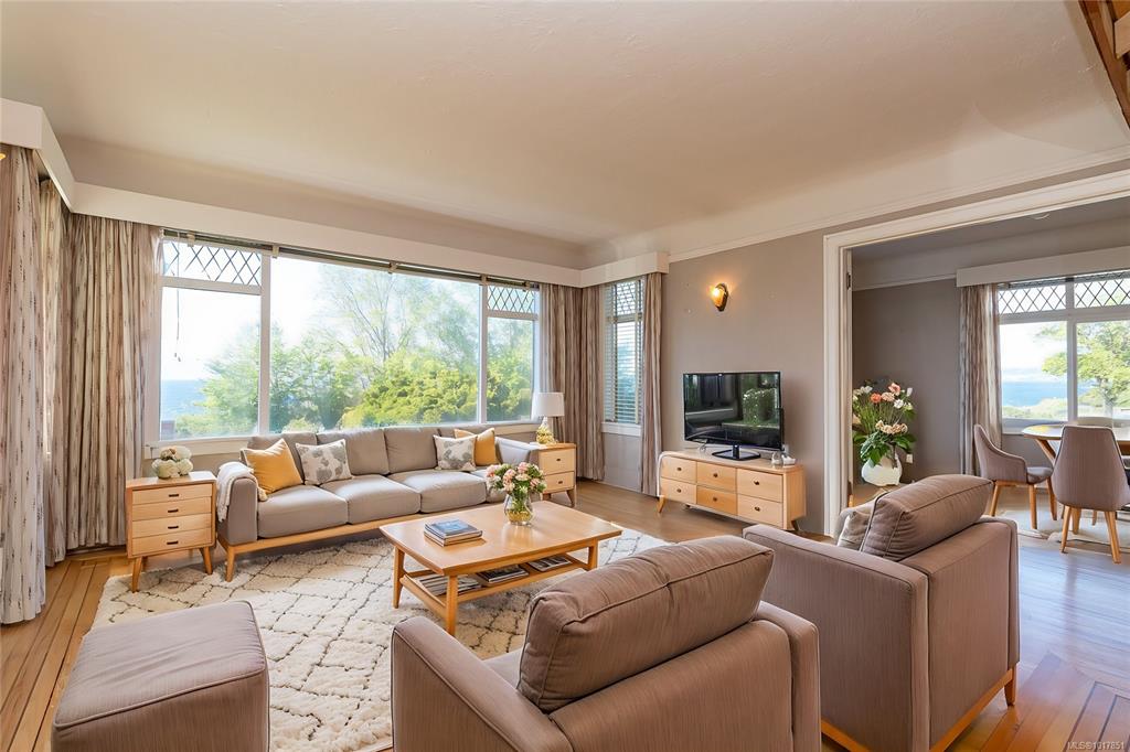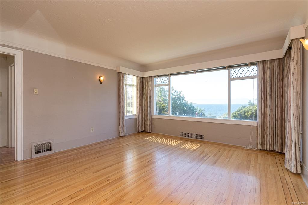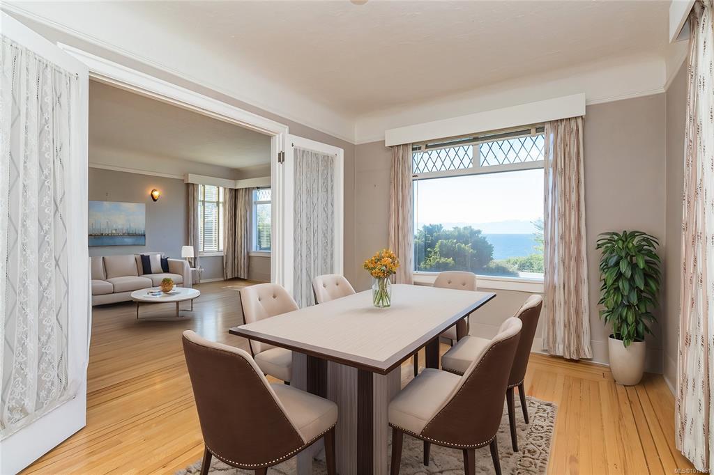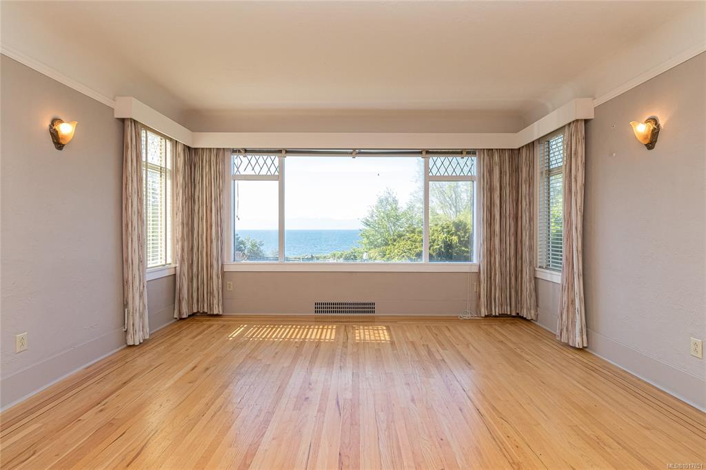 Imagine living right across the OCEANFRONT on Dallas Road, steps to Mile Zero and Beacon Hill Park. The breakwater and beach access is literally across the street. This 1938 character home with four bedrooms and three bathrooms offers panoramic OCEAN VIEWS all the way across to the Olympic Mountains. The original OAK HARDWOOD floors with walnut inlay adorn the living room and formal dining room. The wood fireplace centers the living room in this art deco home. The full basement with walk out access and GAR...