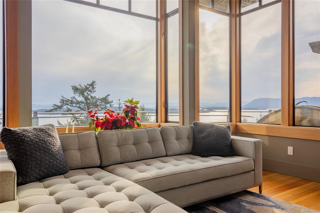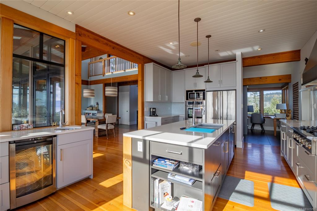 Elevate your lifestyle! Simply stunning custom-built oceanfront estate, perched majestically on 10 acres of pristine land. Breathtaking 270-degree views, stretching across the Gulf & San Juan Islands, Victoria, the Olympic Mountains & beyond! A true sanctuary for those who appreciate natural beauty. Spanning an impressive 3,264 sqft, the main house seamlessly blends modern elegance with artistic sophistication, adorned with rich details that reflect a refined taste for design. The gourmet kitchen is a chef...