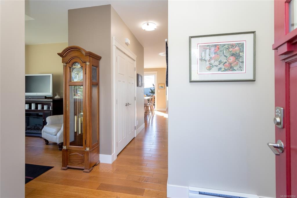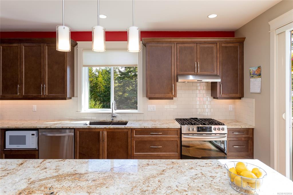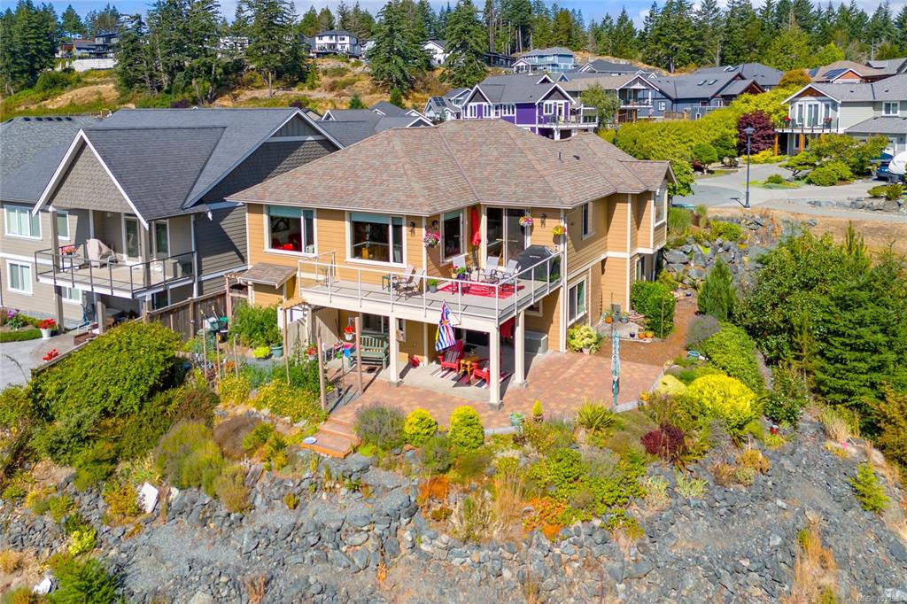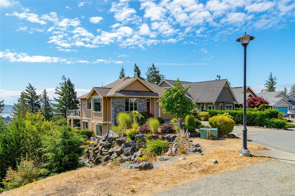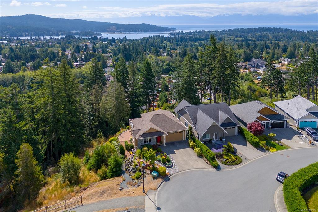 Welcome to this beautifully crafted 3-bed, 3-bath custom home located at the end of a quiet cul-de-sac in Stone Ridge Estates. Surrounded by lush forests, green belt & parkland, enjoy stunning views of the Juan de Fuca Strait, Sooke Basin & Sooke Hills from nearly 2,400 sq ft of thoughtfully designed living space. The main level features true one-level living with a spacious kitchen, dining, living & primary suite, all with engineered hardwood & custom window coverings. The open kitchen offers granite count...