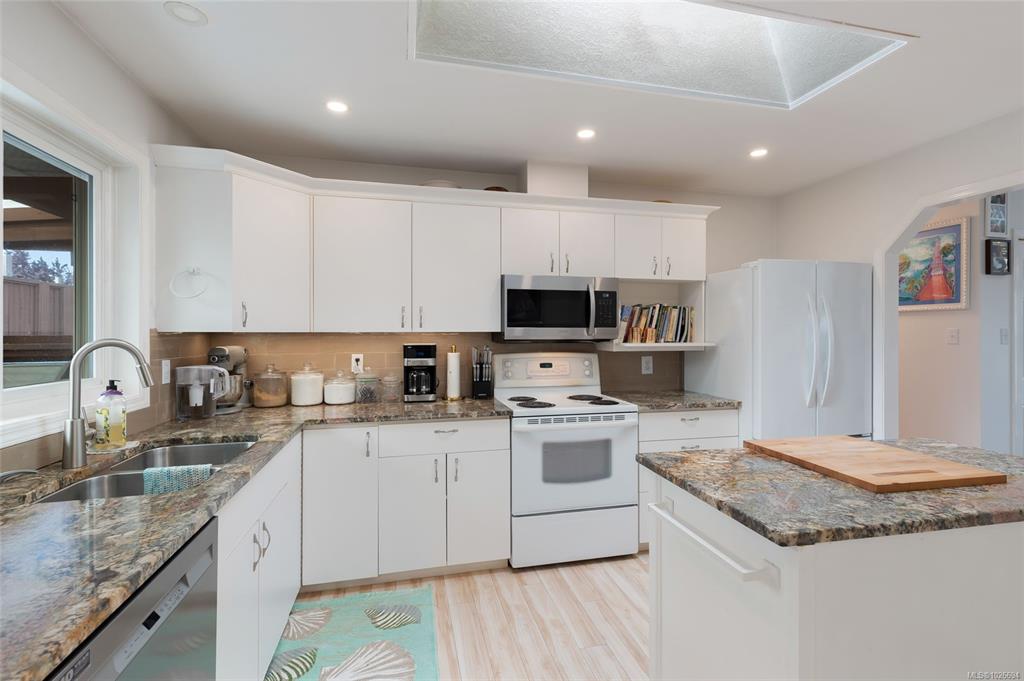 Looking for a spacious 3-bedroom rancher? Check out this lovely home featuring vaulted ceilings, bright kitchen with lots of cabinetry and counter tops plus a nicely upgraded garage. Over 1400 square feet of inside living space, featuring an open concept living/dining area with cozy gas fireplace. Two spare-bedrooms offer flexibility and a place for guests, while the primary suite is complete with 3pc ensuite. And outside offers two private, sheltered patio/ porch areas. A large side yard with greenhouse a...