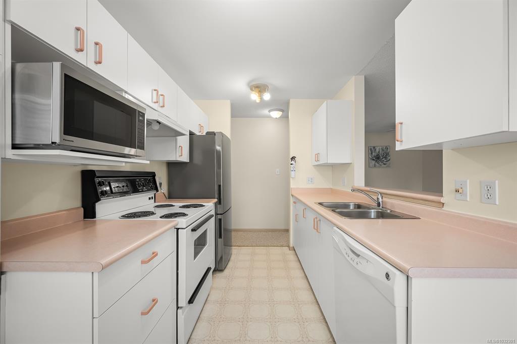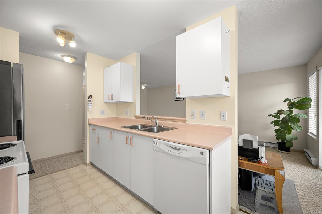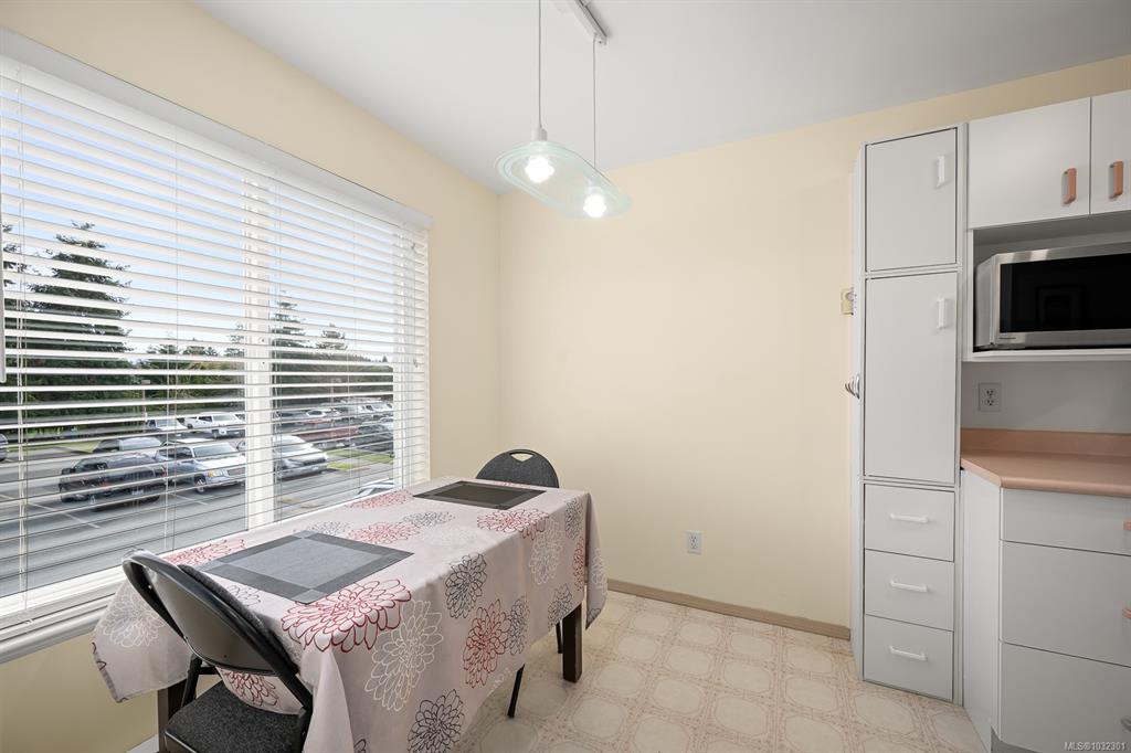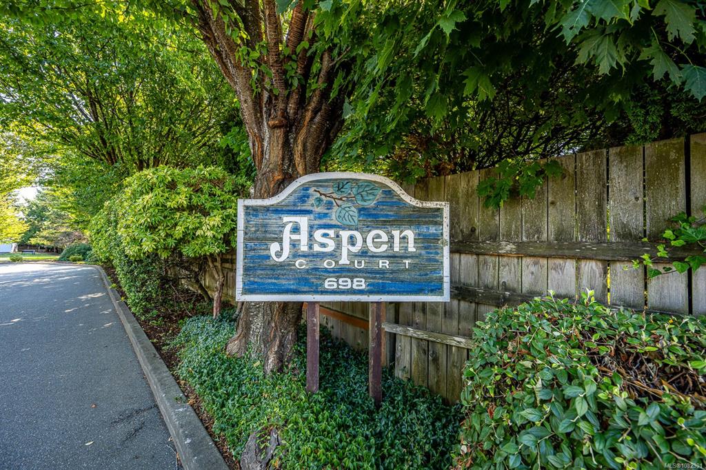 Welcome to the popular Aspen Court complex in beautiful Comox! This clean as a whistle charming 2-bdrm, 1-bath 859sq/ft condo boasts a sunny southern exposure and is nestled away from the hustle and bustle of Guthrie Rd. The living room has lots of space and natural light with access to the covered deck featuring lovely mountain views. There is a great breakfast nook for morning coffee, and a large dining room for family dinners. The primary bedroom features a large walk-in closet. There is lots of addition...