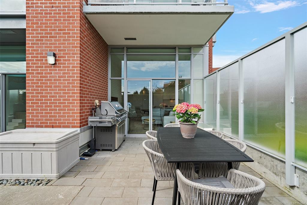 Make your home feel like a vacation at Unit 103 in the Encore, ideally located in the heart of vibrant Vic West. This rare ground floor corner unit offers a bright and spacious 2 bed, 2 bath layout with an open concept design, walls of windows, and 11 ft ceilings in the living room. Thoughtful features include engineered flooring, custom closets, pantry storage, and radiant in floor heating in the ensuite. Step outside to your expansive south facing patio of over 500 sq ft, a private sun filled retreat perf...