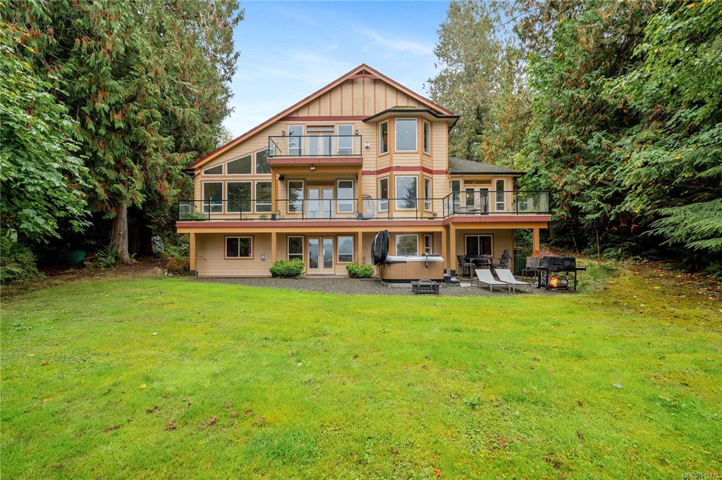 Situated on over 60,000 sq. ft. of pristine oceanfront land in the heart of East Sooke, this is a truly exceptional custom-built estate offering nearly 5,000 sq. ft. of living space, private beach access, & panoramic views. This 6-bed, 5-bath home features soaring ceilings, dramatic picture windows, & thoughtful craftsmanship. Main level features a spacious family room anchored by a striking double-sided fireplace, a gourmet kitchen w/ large island, 5 burner stove, window seat & an elegant dining area. Up...