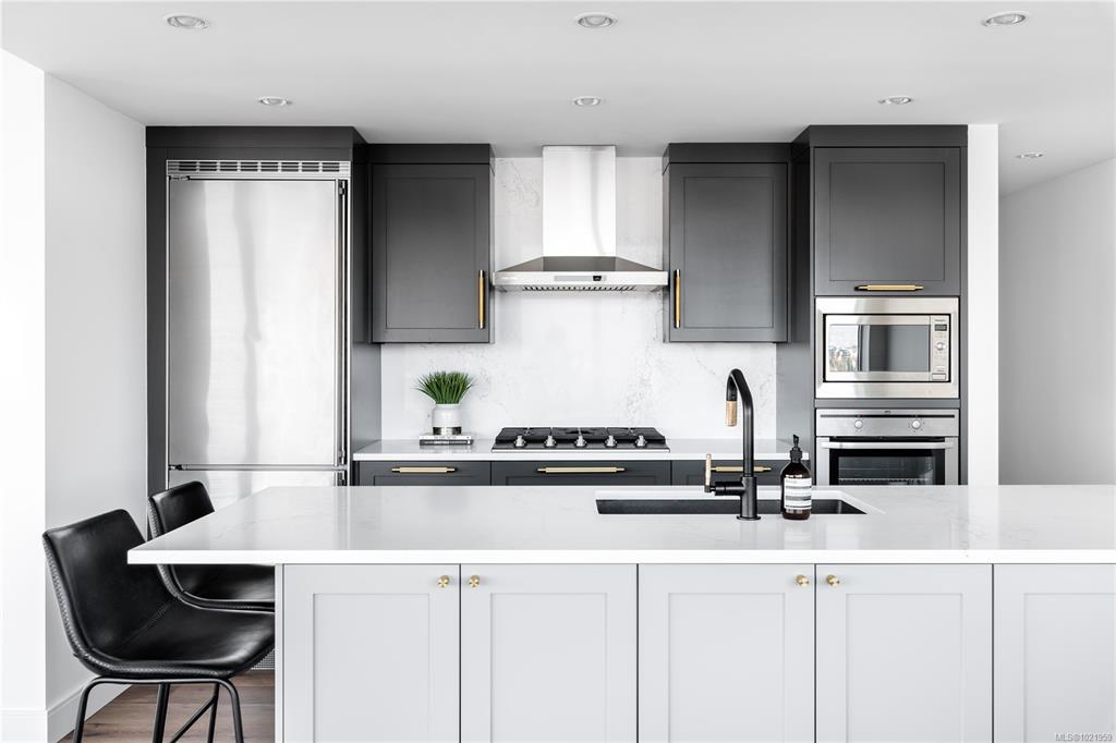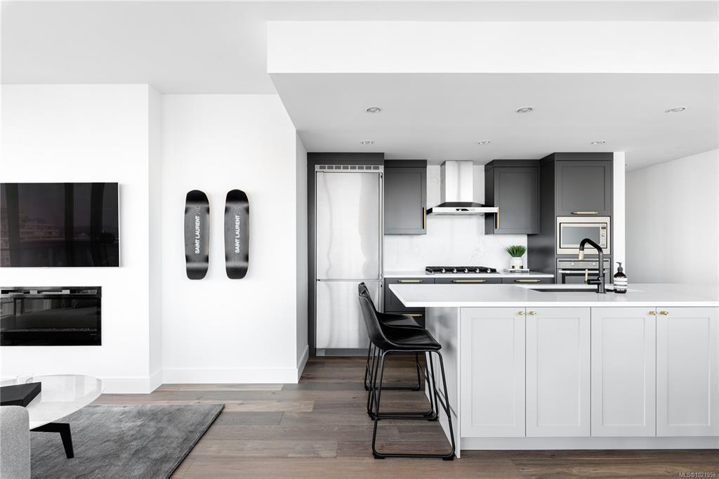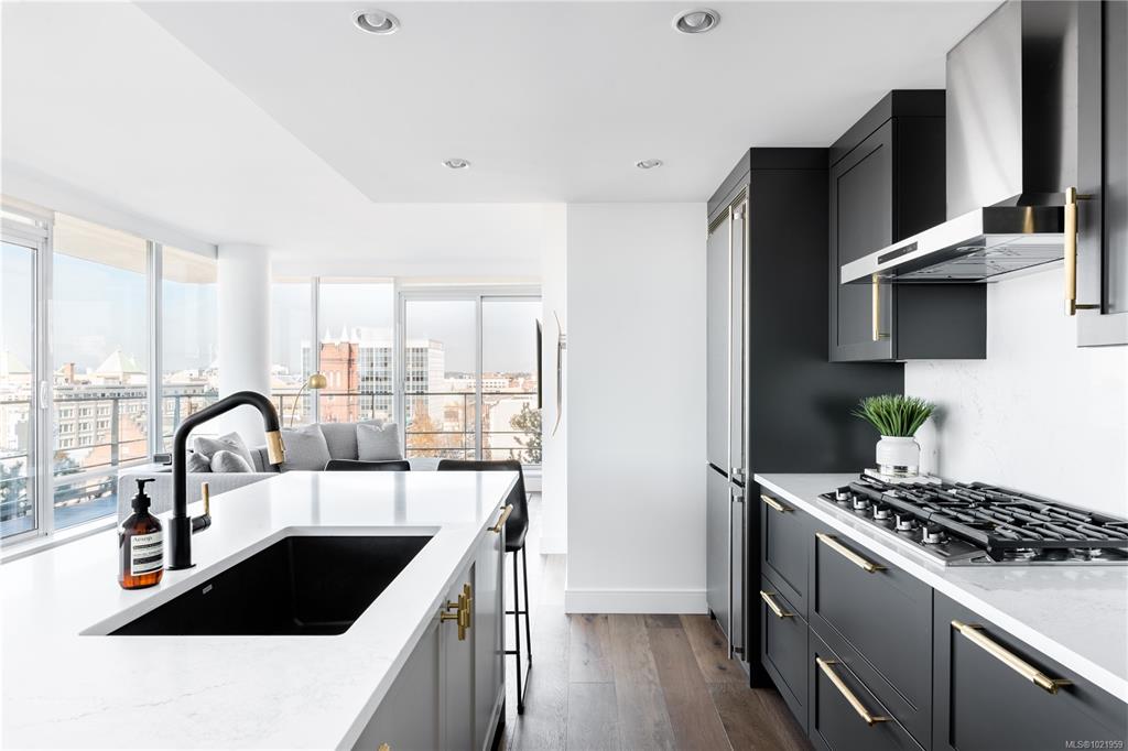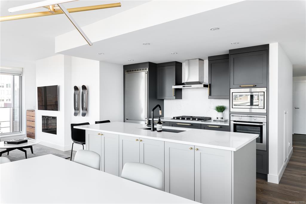 The most refined and design-forward offering available at The Falls. This is 1105, a corner, harbour-sunset-facing 2-bedroom + den, 2-bath, in-suite storage room, and nearly 1,200 sqft of magazine-featured interior space. This custom residence stands apart with tailored upgrades and bespoke detailing throughout. Fully reimagined in 2021 with curated materials: real wide-plank walnut hardwood floors, custom Thomas & Birch kitchen millwork, quartz countertops, Buster+Punch hardware, and updated appliances. A ...